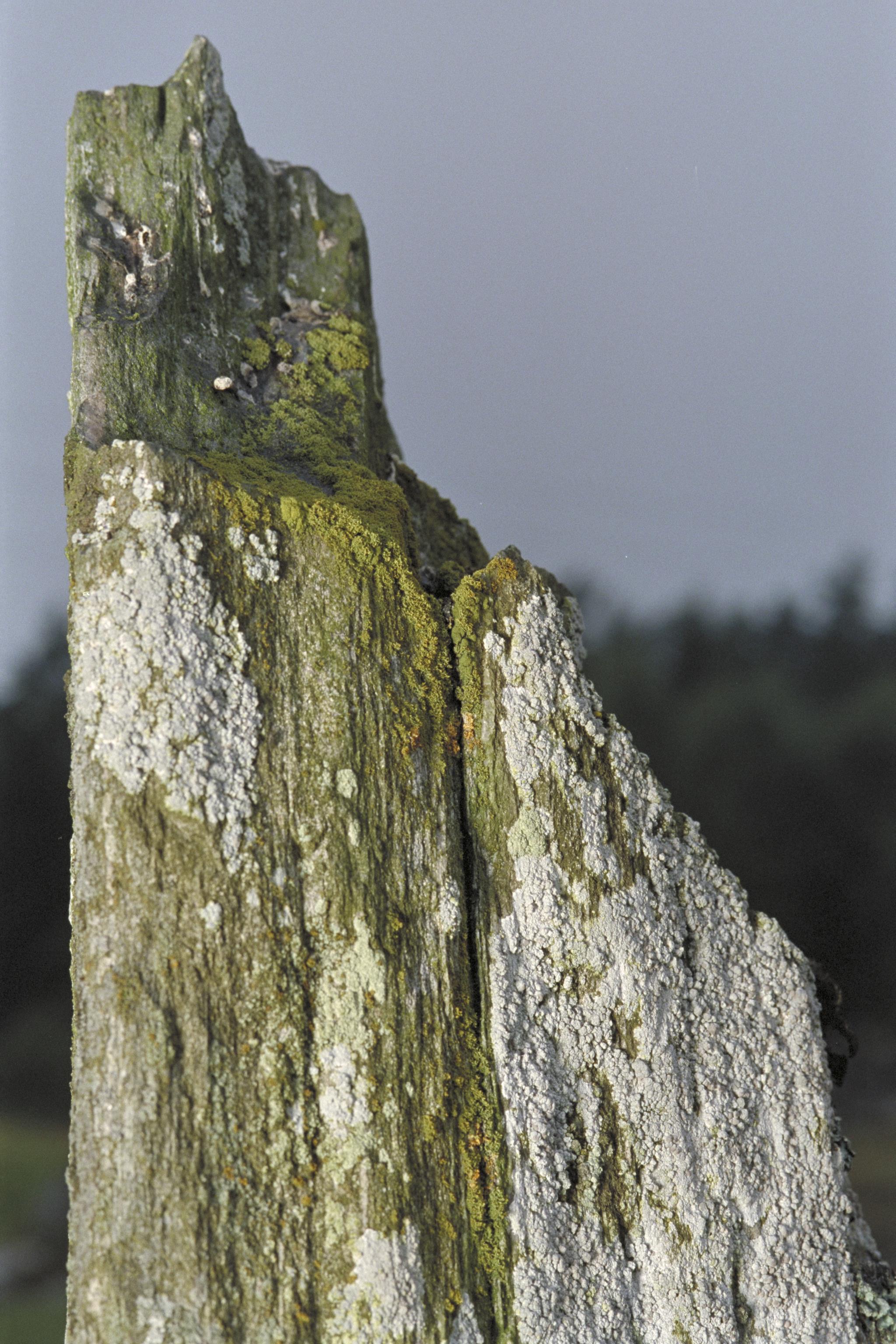 Stenen står öppet beläget i en hästhage, ca 100 m V om väg 160 på Orust ca 2 km NO om Stala kyrka. En knappt framkomlig väg leder förbi platsen. Mulet med begynnande regn. Bef. Ljus kombinerat med bouncerblixt. Fototid ca 2 tim. Studioblixt med elförsörjning, stege med ca 4 trappsteg. Införlivades i Runskadeprojektet år 2000. Den 250 cm höga stenen har en kort runtext endast på V smalsida.