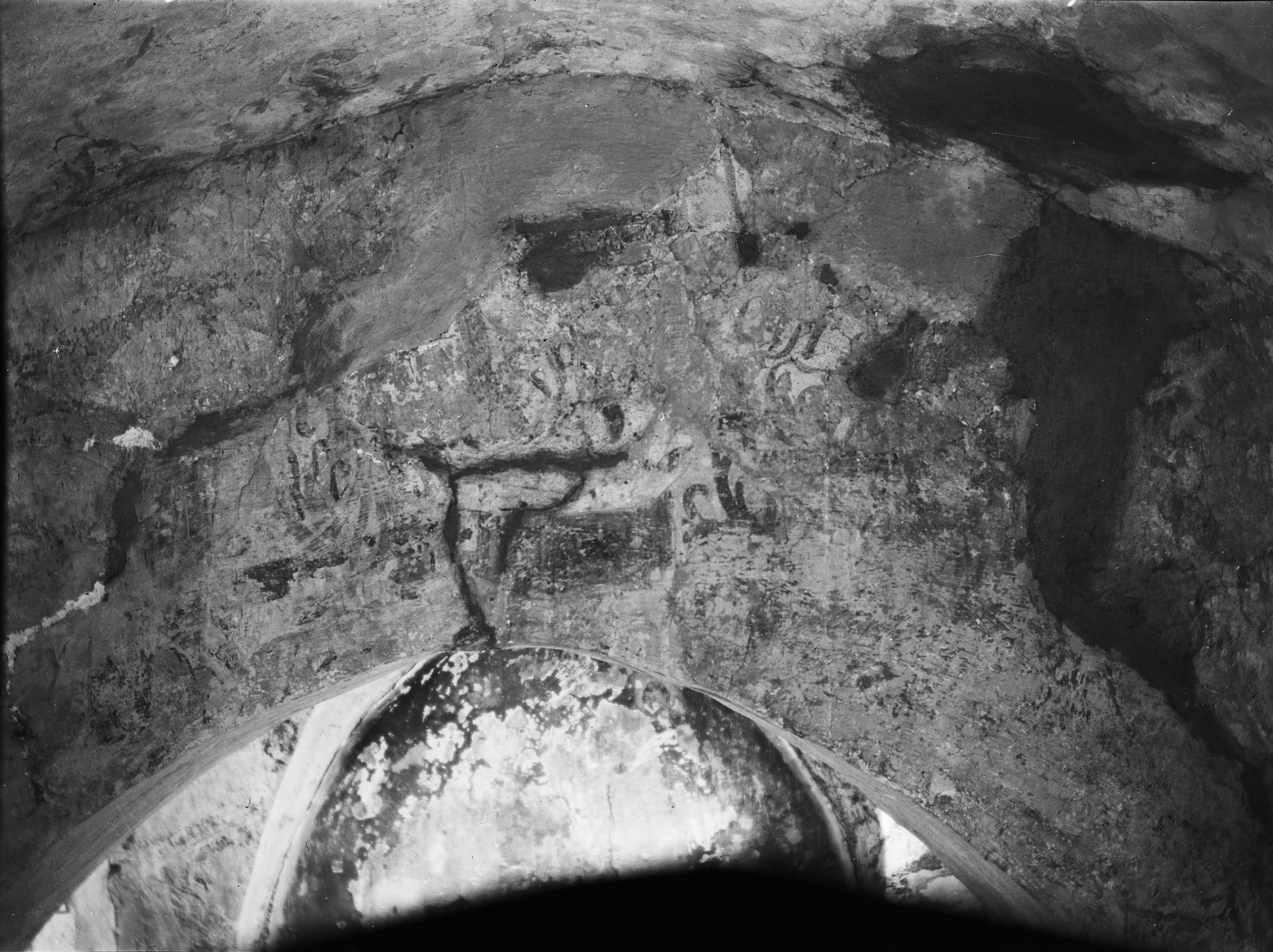 • Kalkmålningar. Triumfbågen mot långhuset. Efter avknackningen.