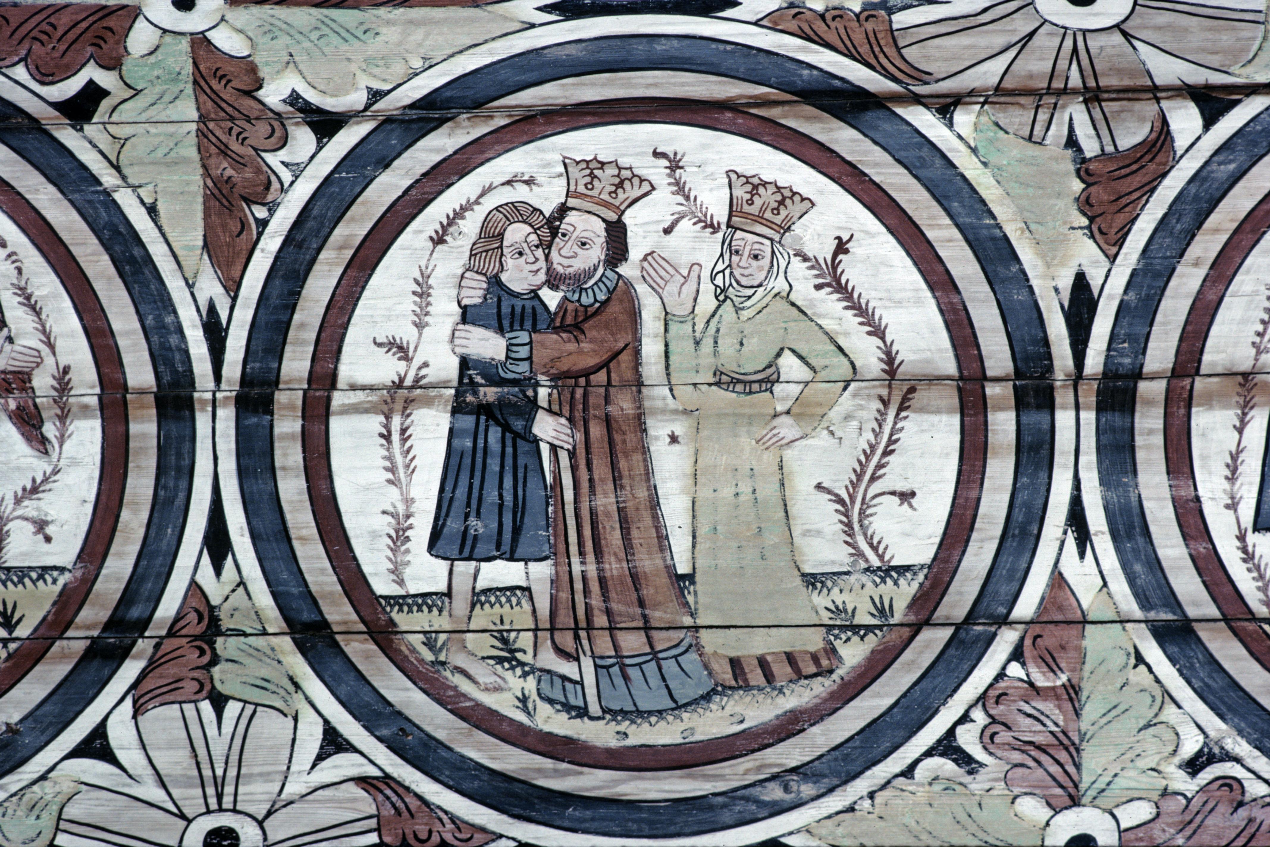• Detalj av takmålning. Fotodatum troligen mitten på 1980-talet.