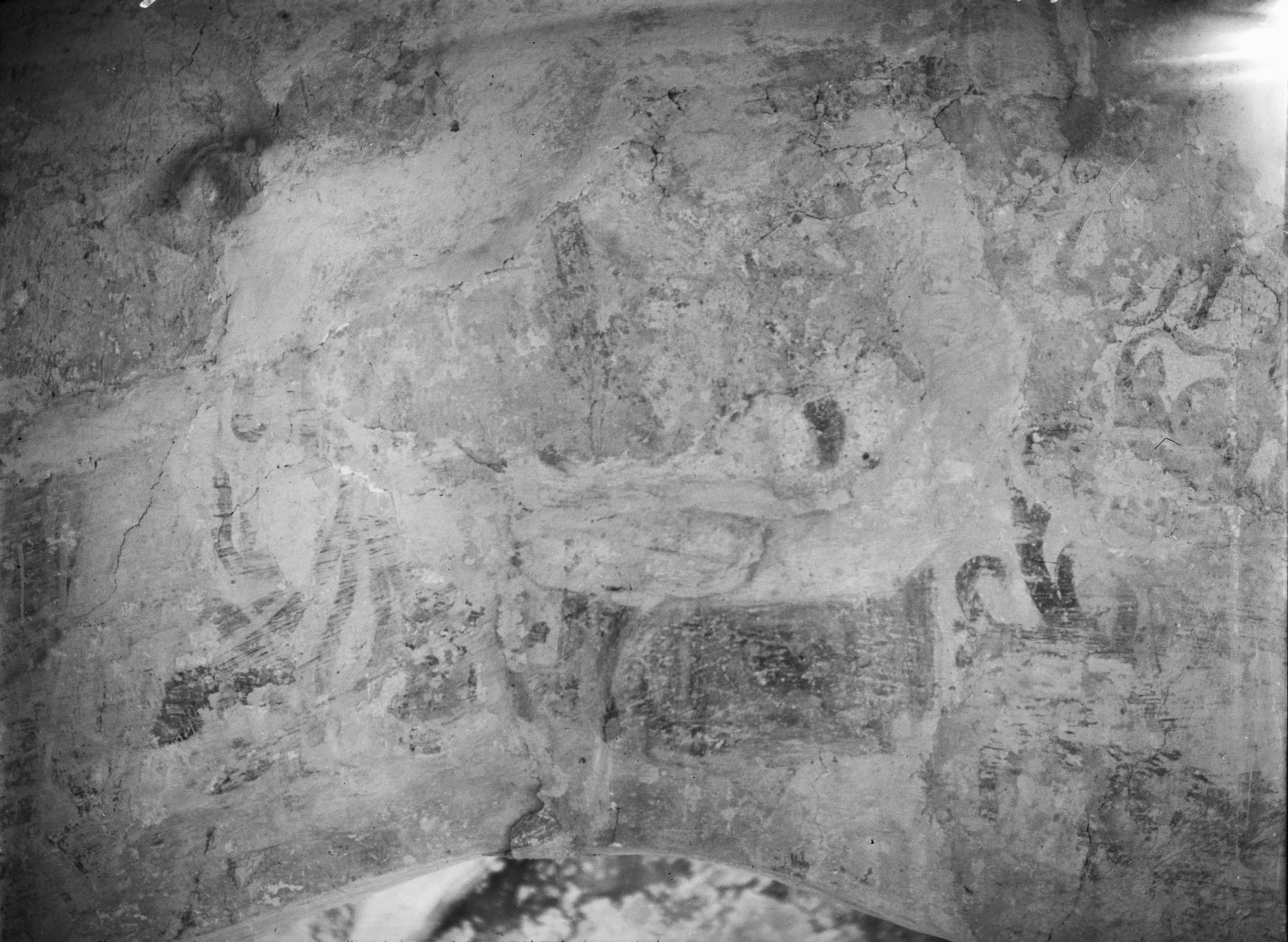 • Kalkmålningar. Triumfbågen mot långhuset. Detalj. Efter färgiprickningen.