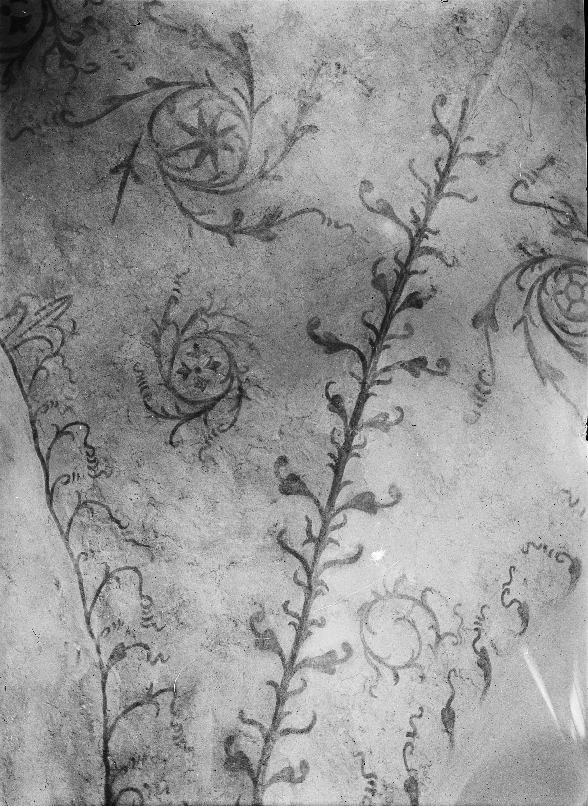 • Kalkmålningar i västra valvet i långhuset. Senmedeltida. Sydväst. Efter kompletteringen.
