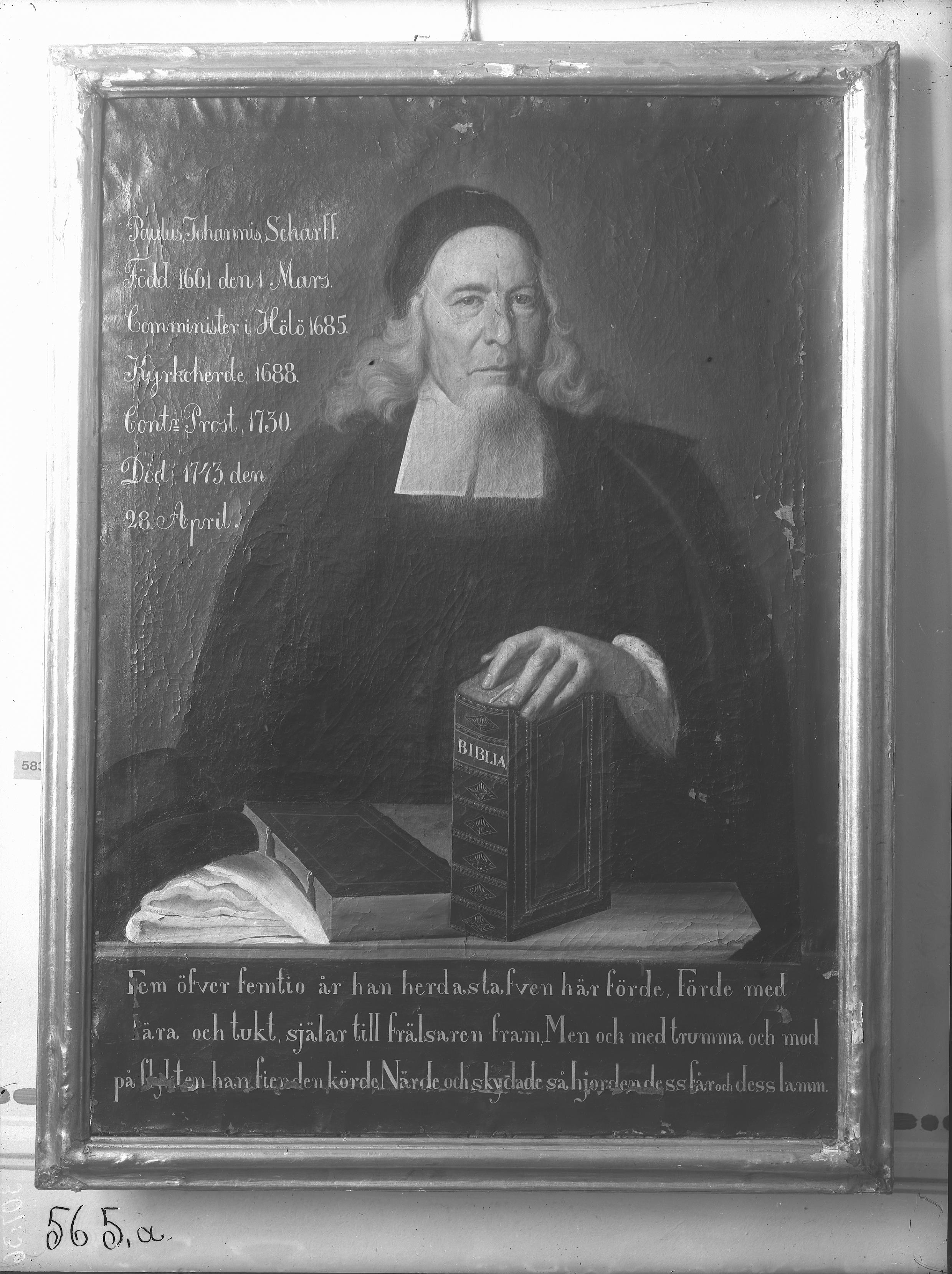 • Porträtt av Paulus Johannes Scharff, död 1743, kyrkoherde i Hölö, oljemålning på duk.