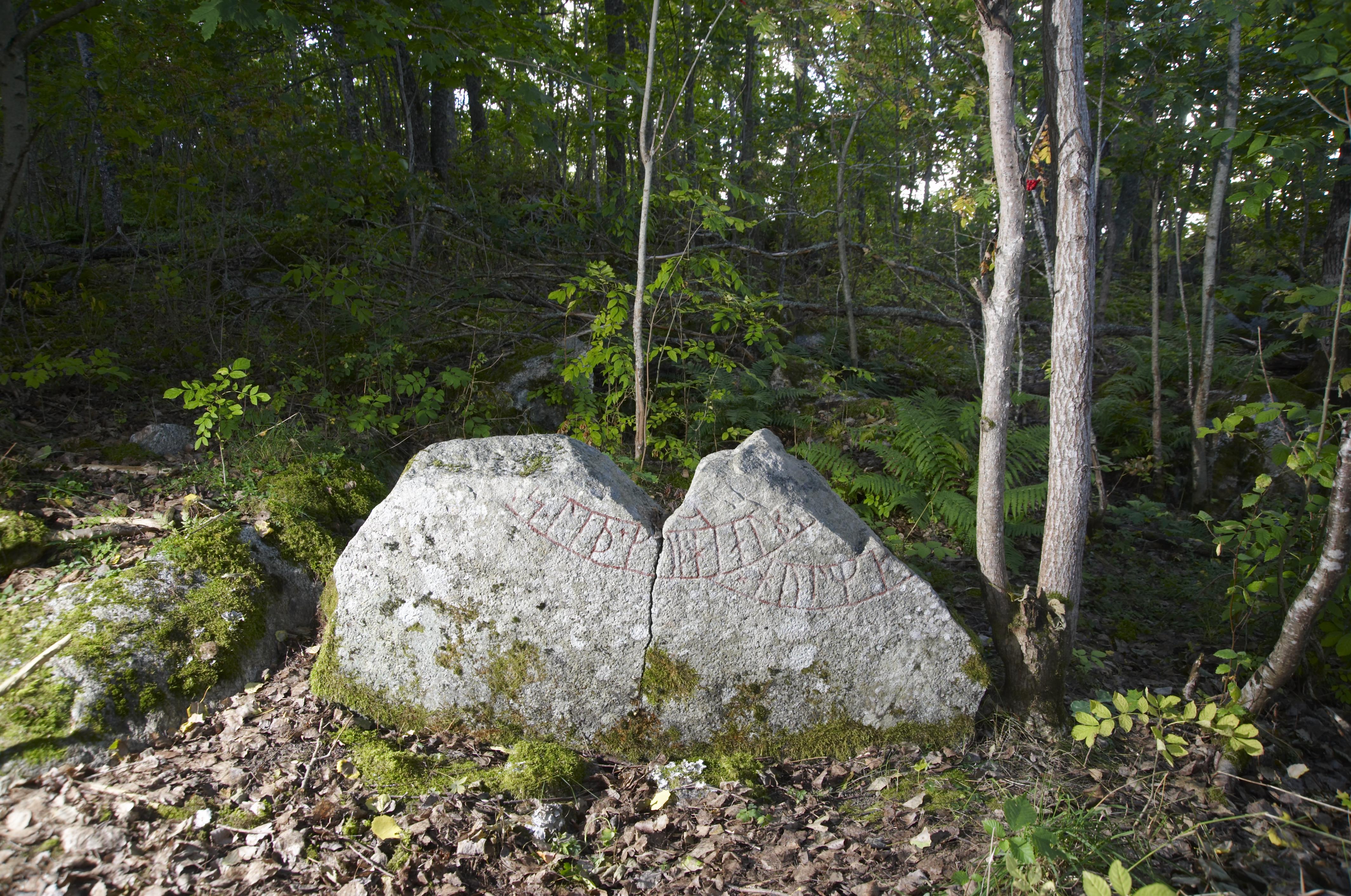 RAÄ-nummer Nysätra 98:1. Stenen är avslagen samt spräckt på mitten. Lutar svagt åt söder. Endast en mindre del av runslingans nedre del är kvar. Inskriften lyder: ".....och Holmger....Ingvars här. Gud hjälpe....". Fotosyfte: Dokumentation