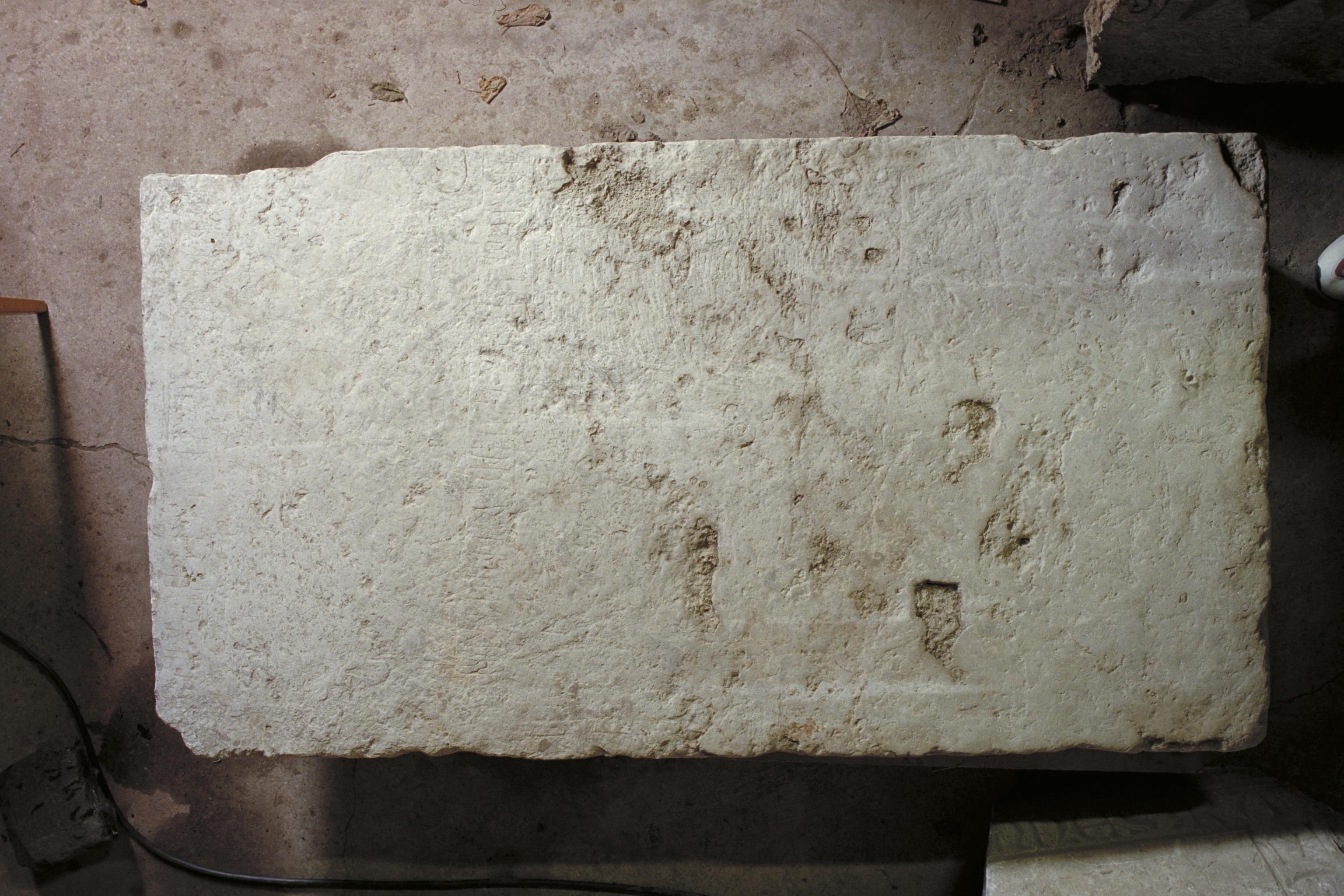 Bildstensfragment (80x148) liggande, med runinskrift. Den mycket nötta inskriften lyder: "... Farulv son ... de ... tyd(?) ...". Fotosyfte: Undersökning/publicering