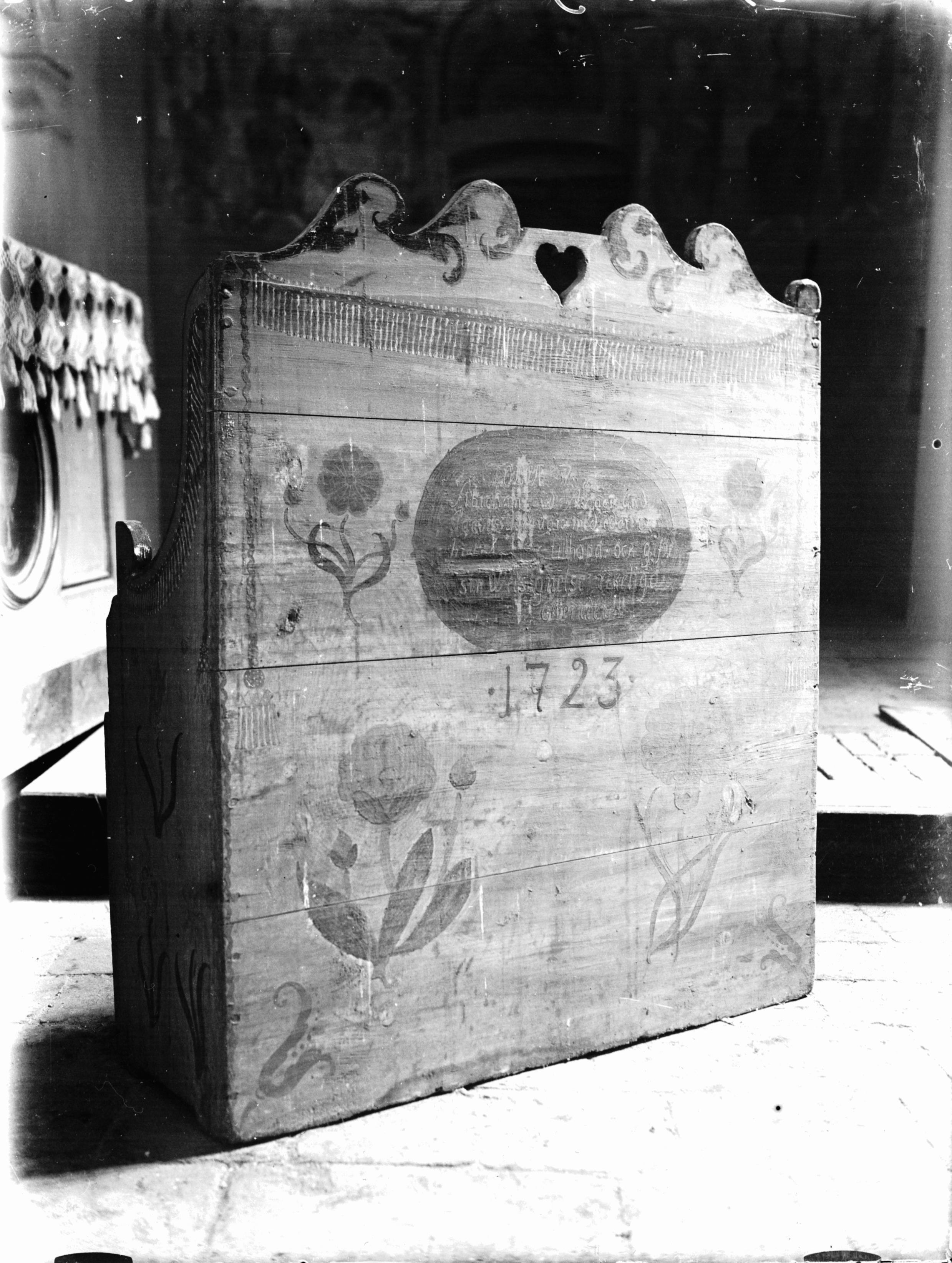 • Brudbänk av furu, 1723. Snabbinv.