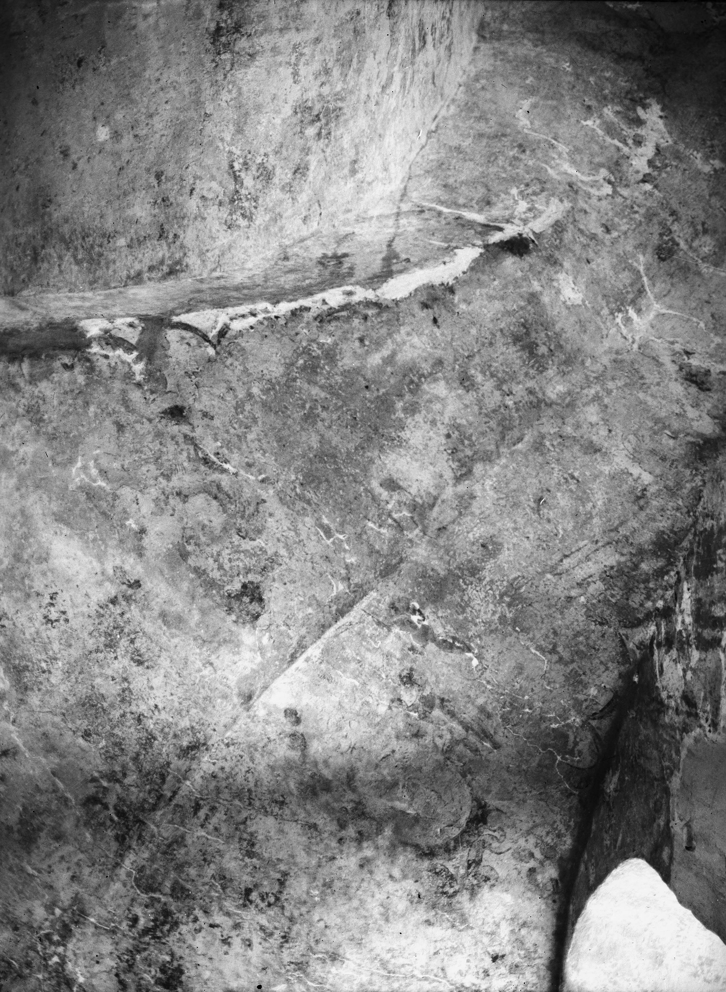 • Kalkmålningar. Korvalvet sydväst. Efter nedskrapningen.