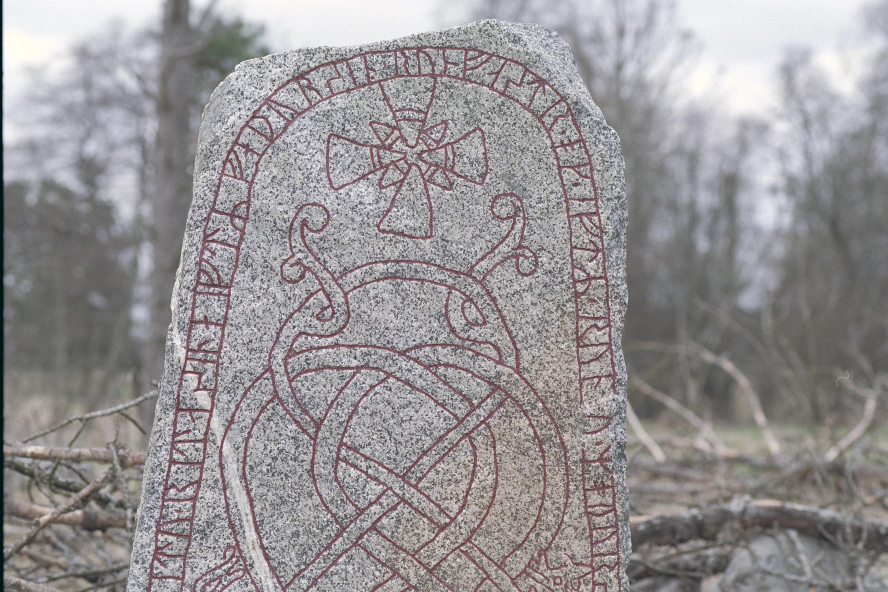 • Inskriften lyder: Hagbard och Ingegärd lät uppresa stenarna till minne av sin fader Runfast och till minne av Runa, sin moder. Ingulv ristade runorna. Hagbard gjorde bro.
