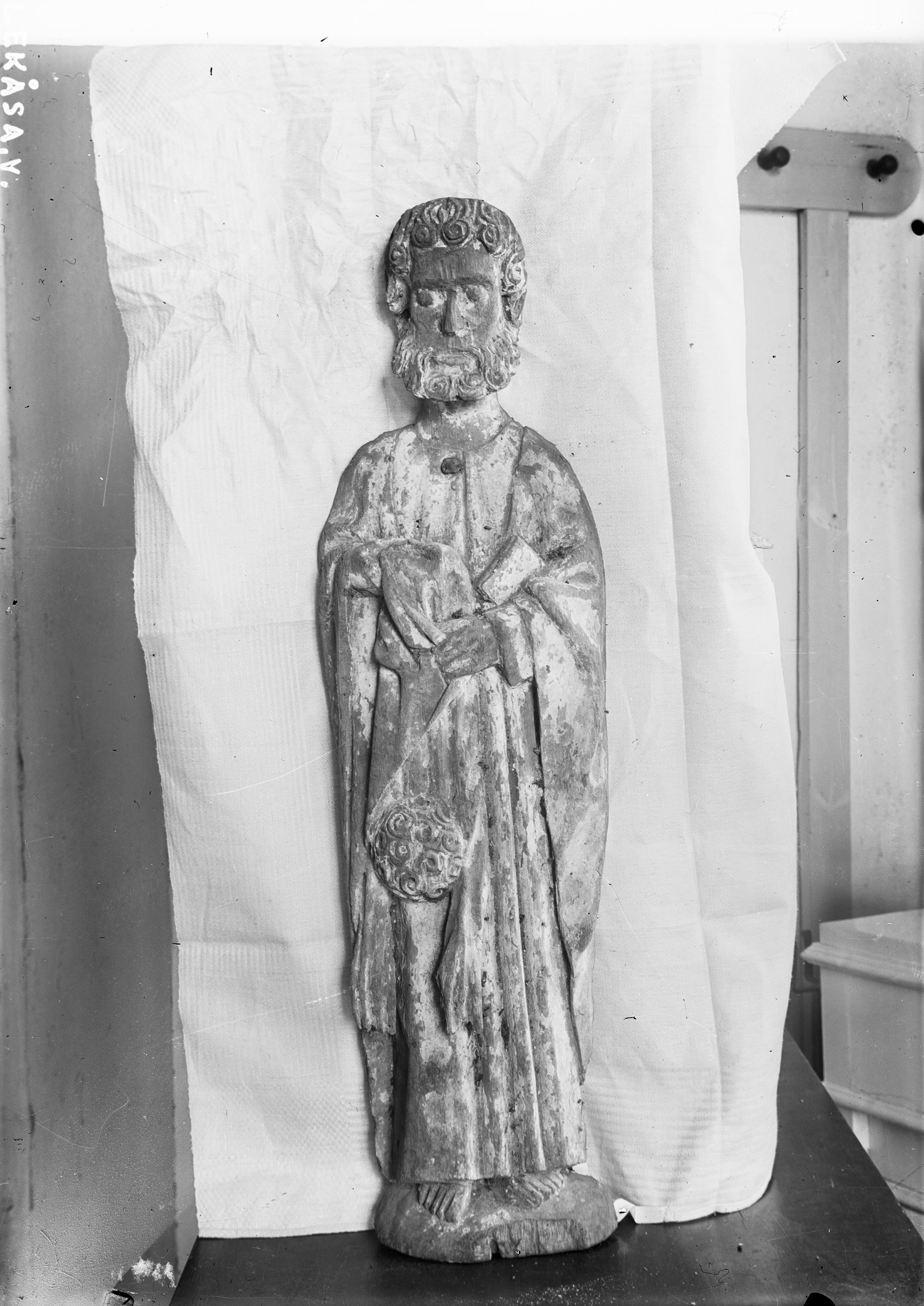 • Träskulptur från altarskåp, S:t Bartolomeus, slutet av 1400-talet. Snabbinv.