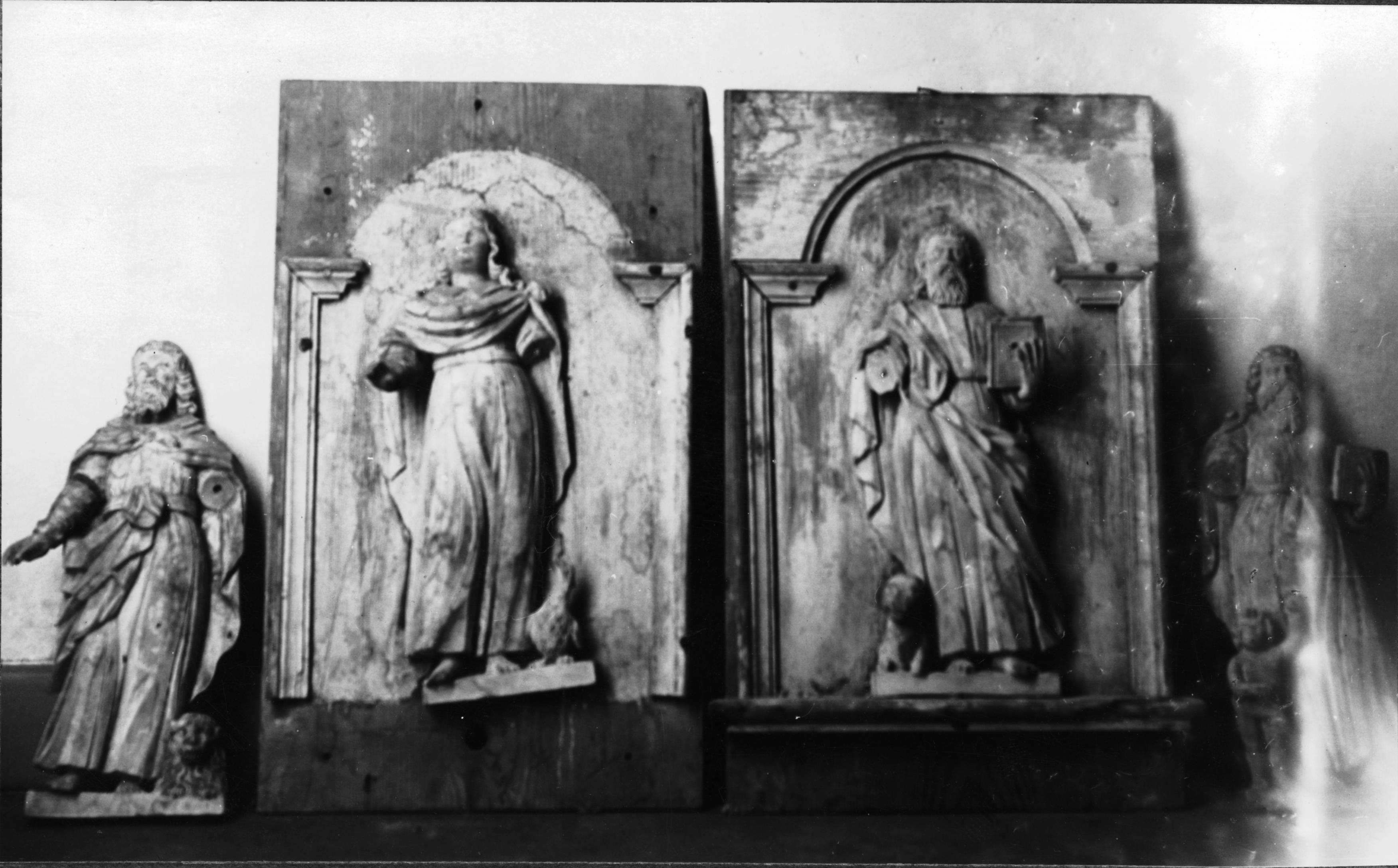 • Del av predikstol framställande evangelister. Före restaurering.