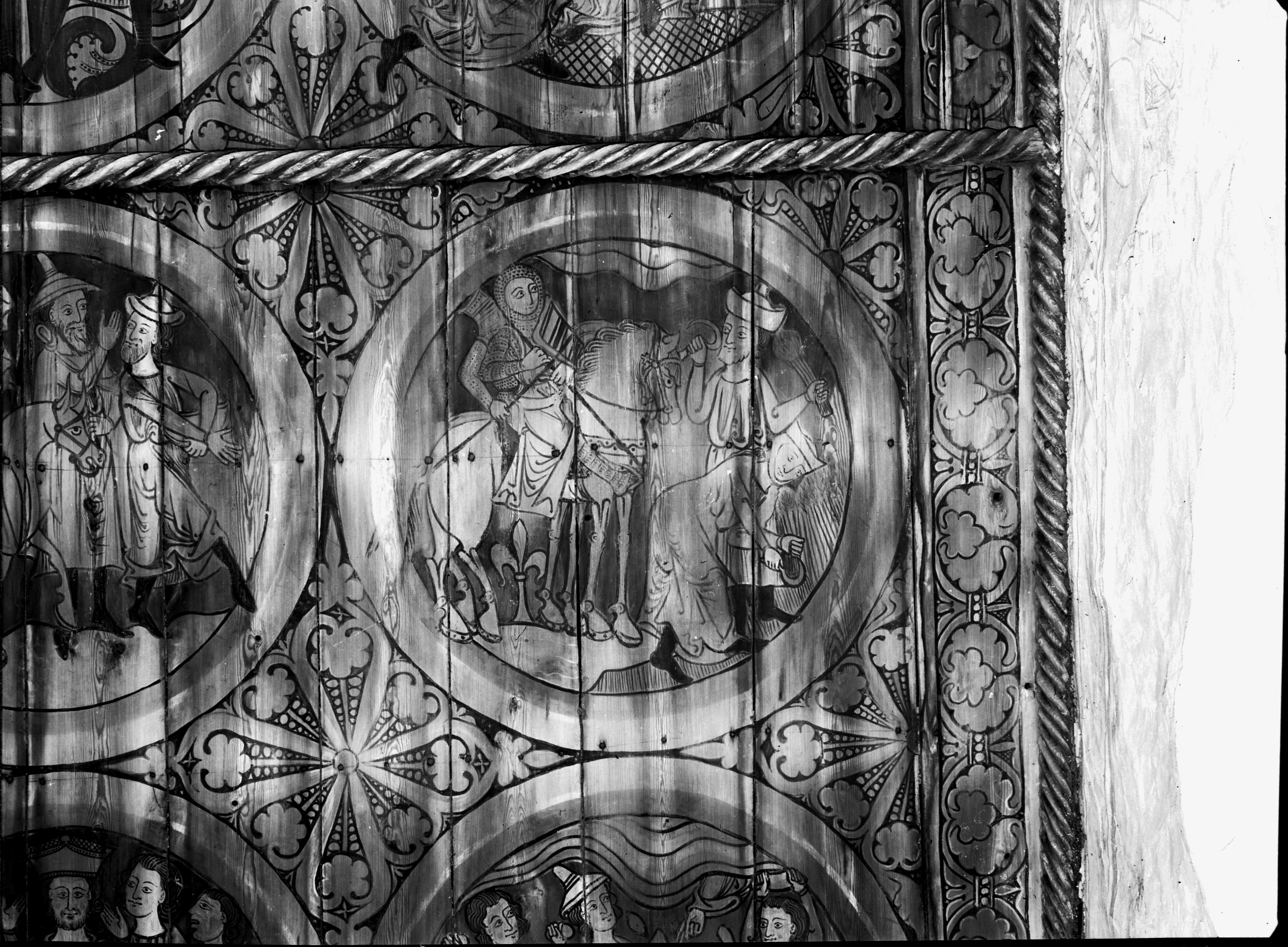 • Trämålningar i taket, från slutet av 1200-talet. I cirkelmedaljonger skildras Jesu och Marias liv samt Staffanslegenden.