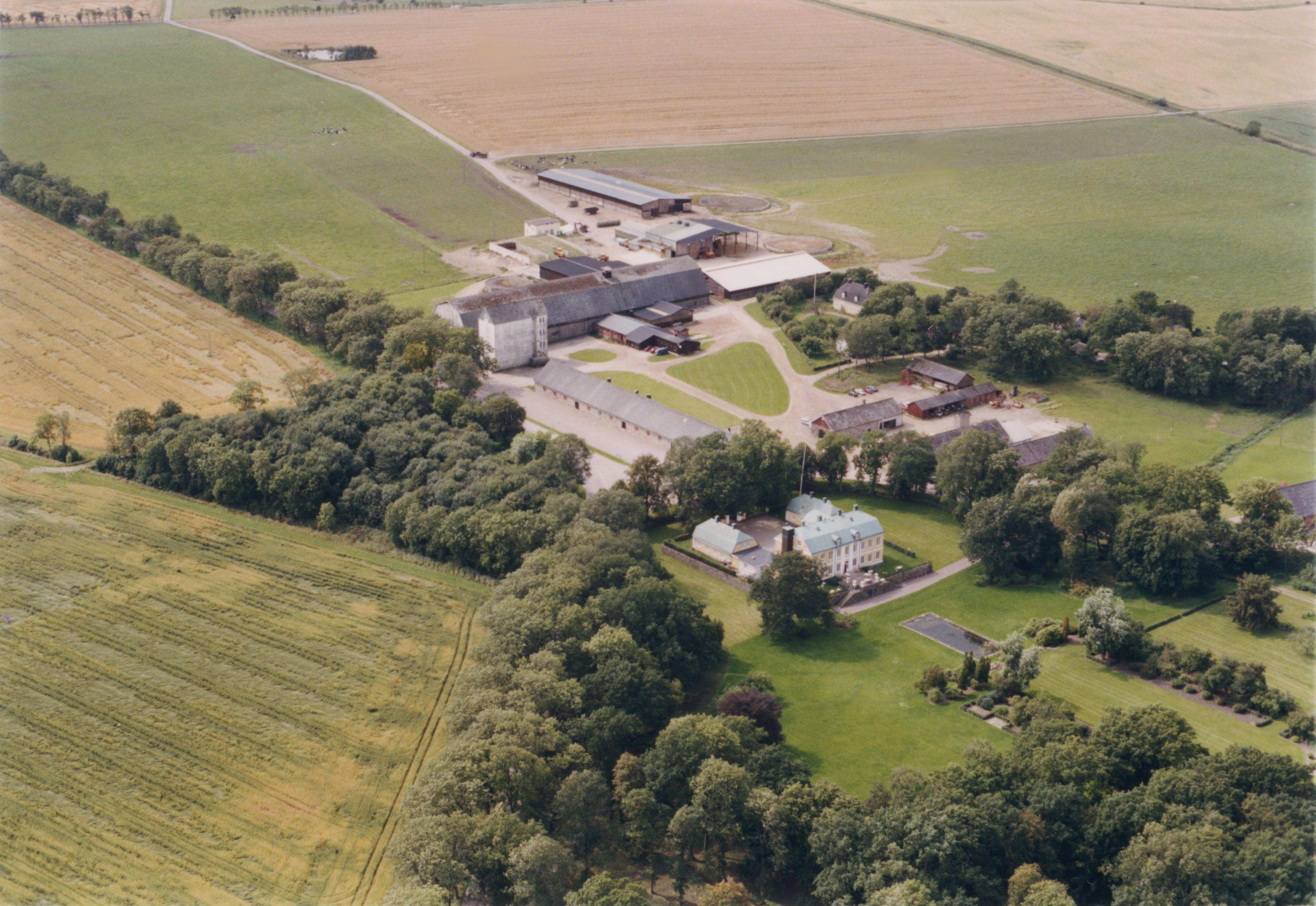 Bilden saknar negativ. Den är skannad år 2019 från papperskopia (c:a 10x15). Om bilden ska användas måste den skärpas och kollas noga för damm o.dyl. Riksintresse-nr/namn: N31 - Vapnödalen. Socken: Vapnö. Motivering: Herrgårdslandskap som speglar medeltidens danska storgodsbildning och introduktionen av 1800-talets kapitalistiska jordbruk. (Fornlämningsmiljö, Borgmiljö). - Uttryck för riksintresset: Vapnö gods och kyrka med medeltida ursprung och intill liggande storhög, underlydande gårdar, borgholme i sjö och grävda kanaler, parkanläggning, fruktträdgård, allékantad äldre väg med runsten intill södra flygelbyggnaden. Heagård präglad av intensiv uppodling under 1800-talet. [Texten uppdatera(…) Texten i detta fält har förkortats vid migrering till e-arkivet. Se filbilagan extra.xml för fullständig information under note_archivist.