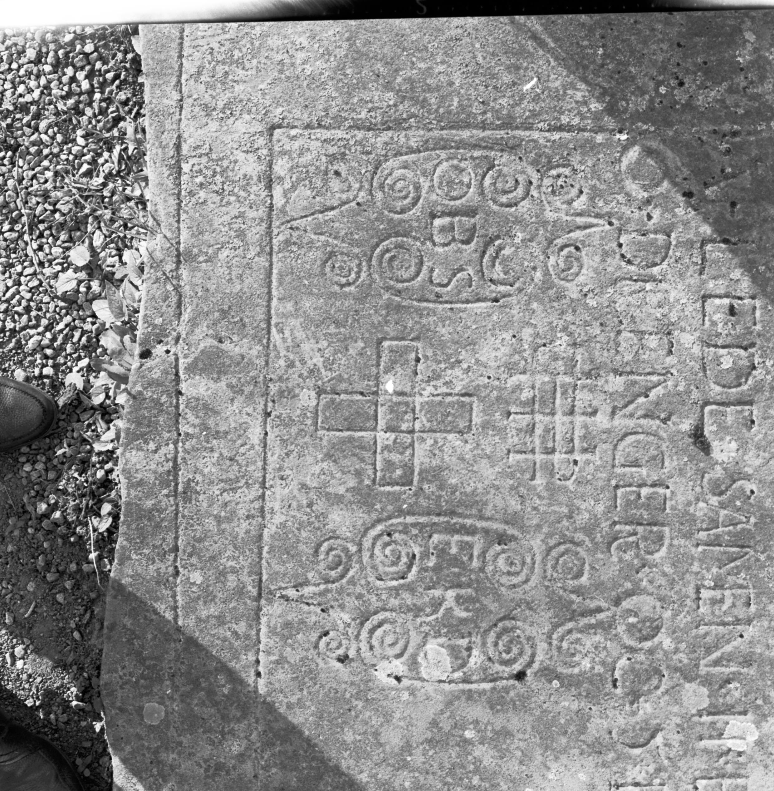 • Detalj av gravhäll på kyrkogården över Bengt Börjesson och hans hustru.