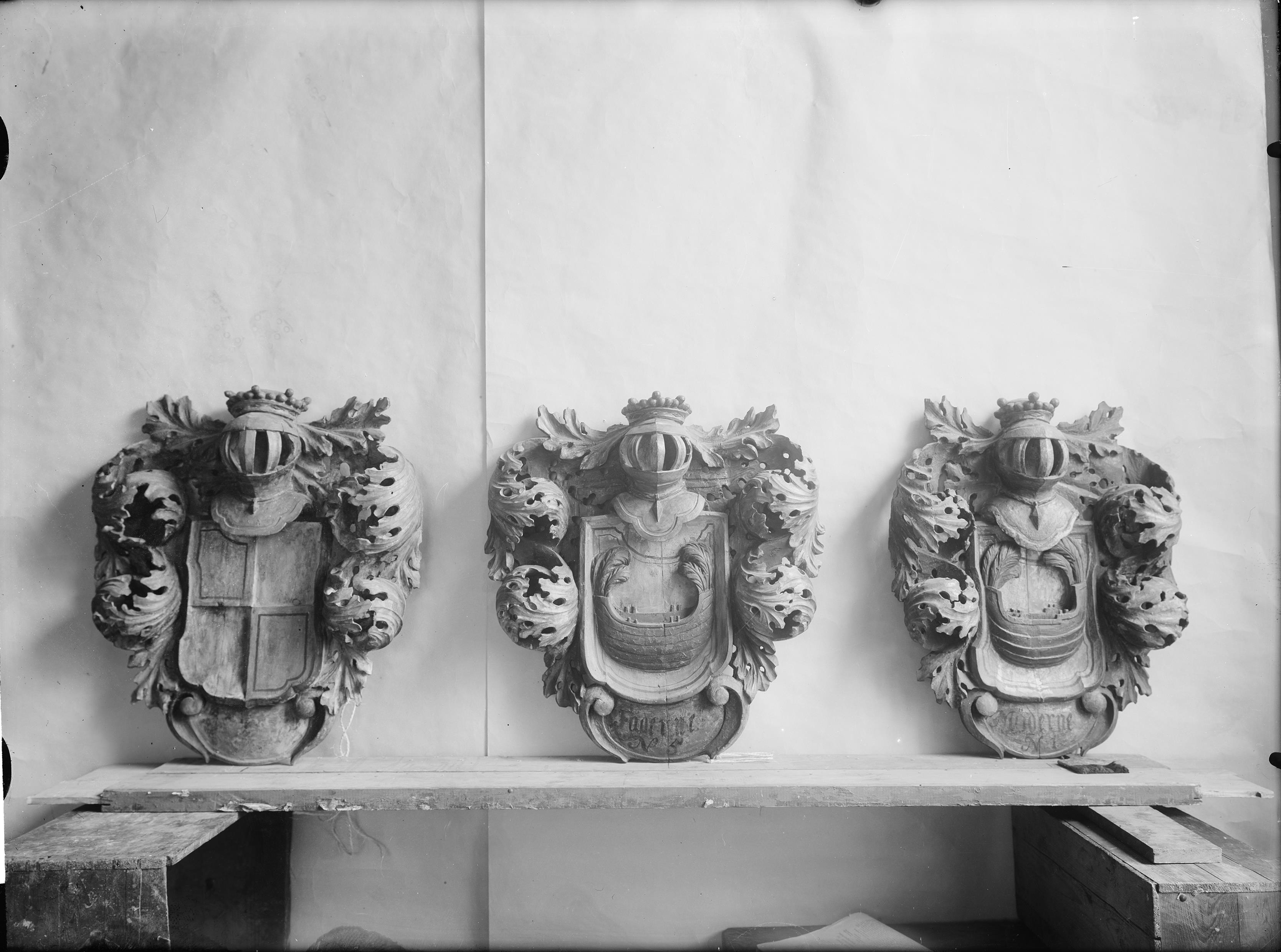 • Vapensköldar med Grytas (?), Bååts och Bondes vapen. Efter restaurering av Alfred Nilson.