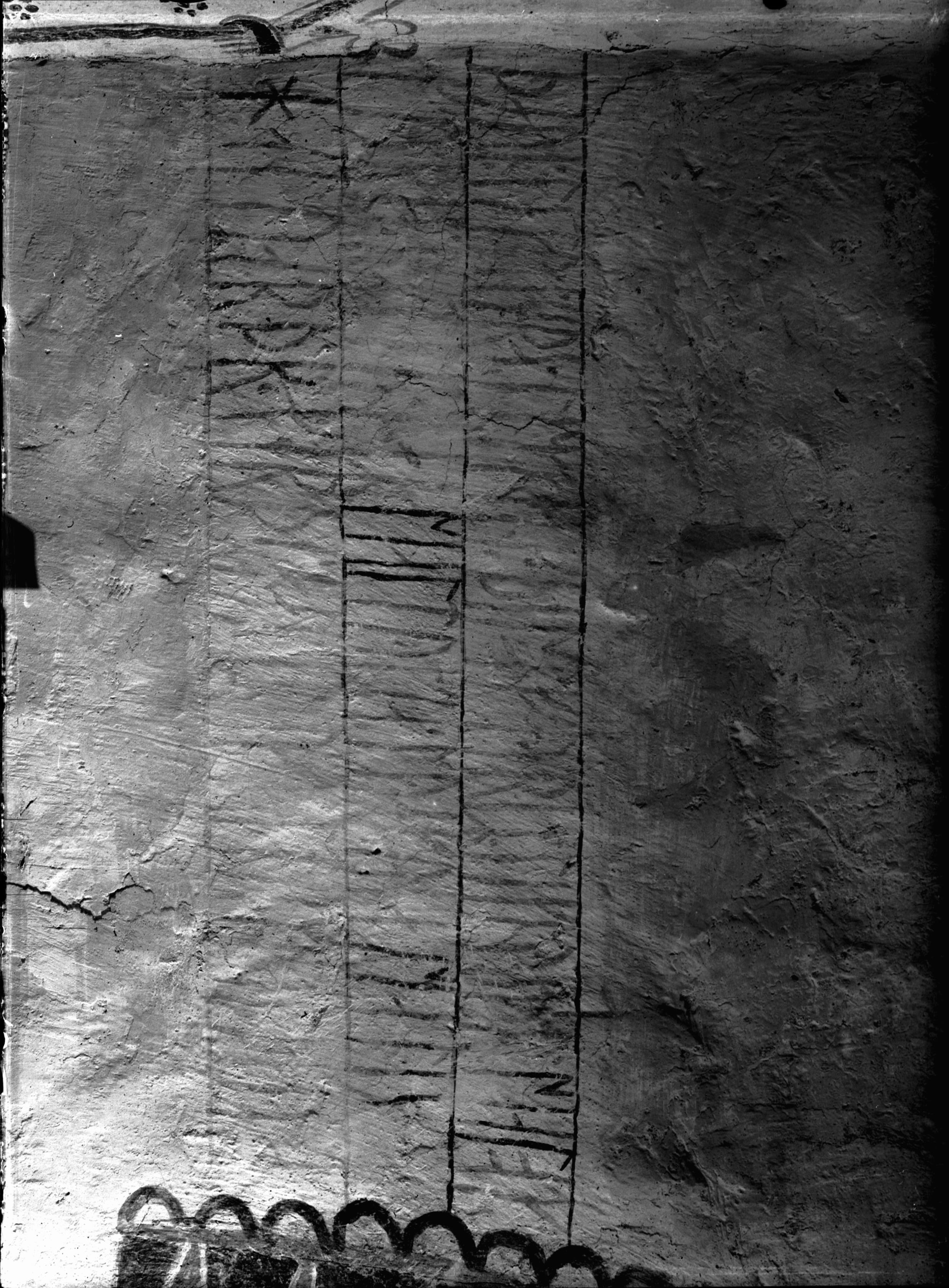 • G120 Anga. Detalj av runinskrift på långhusets östra mur.
