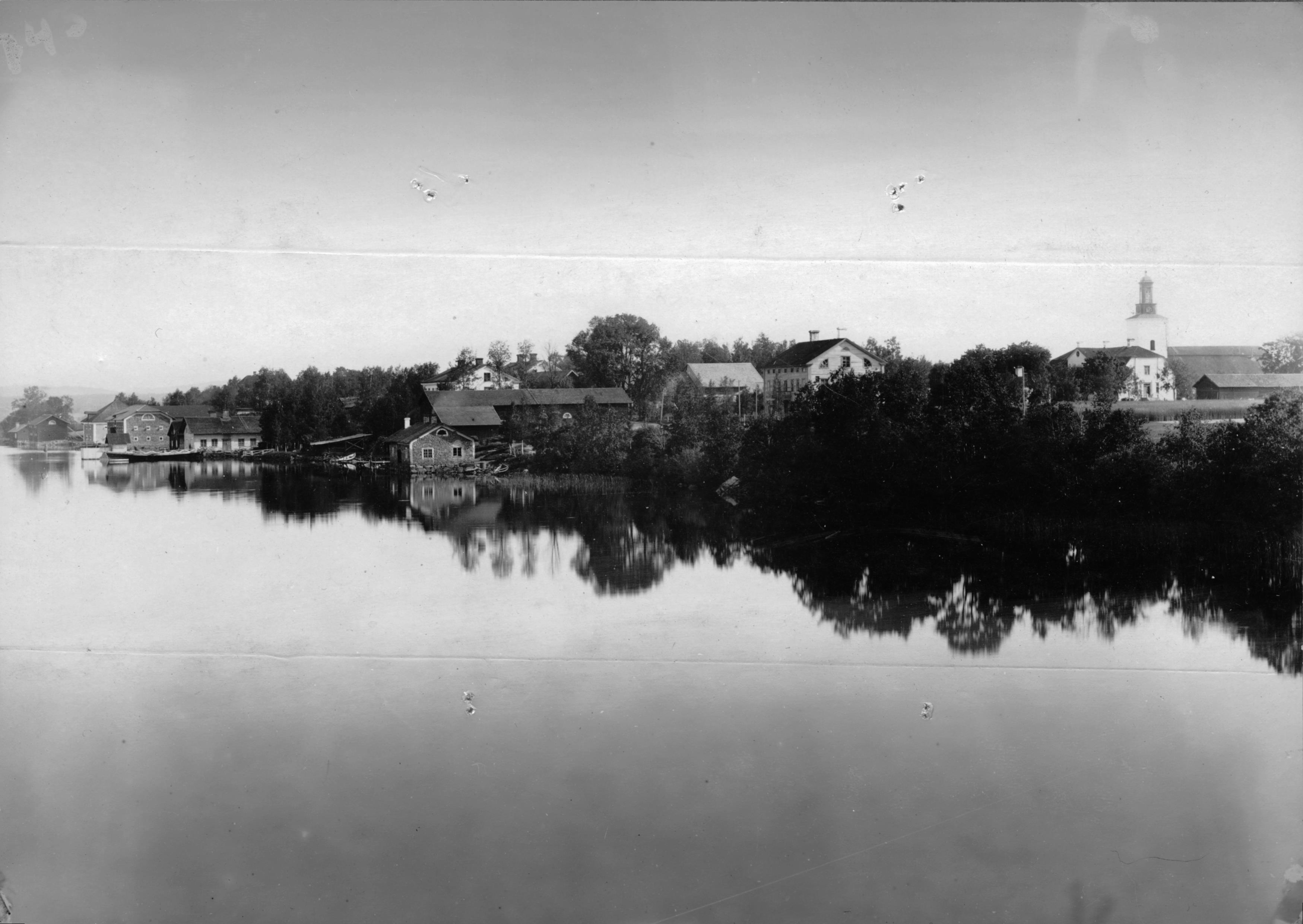 • Kyrkan med omgivningar. Foto för tidningen Hemmet år 1899.