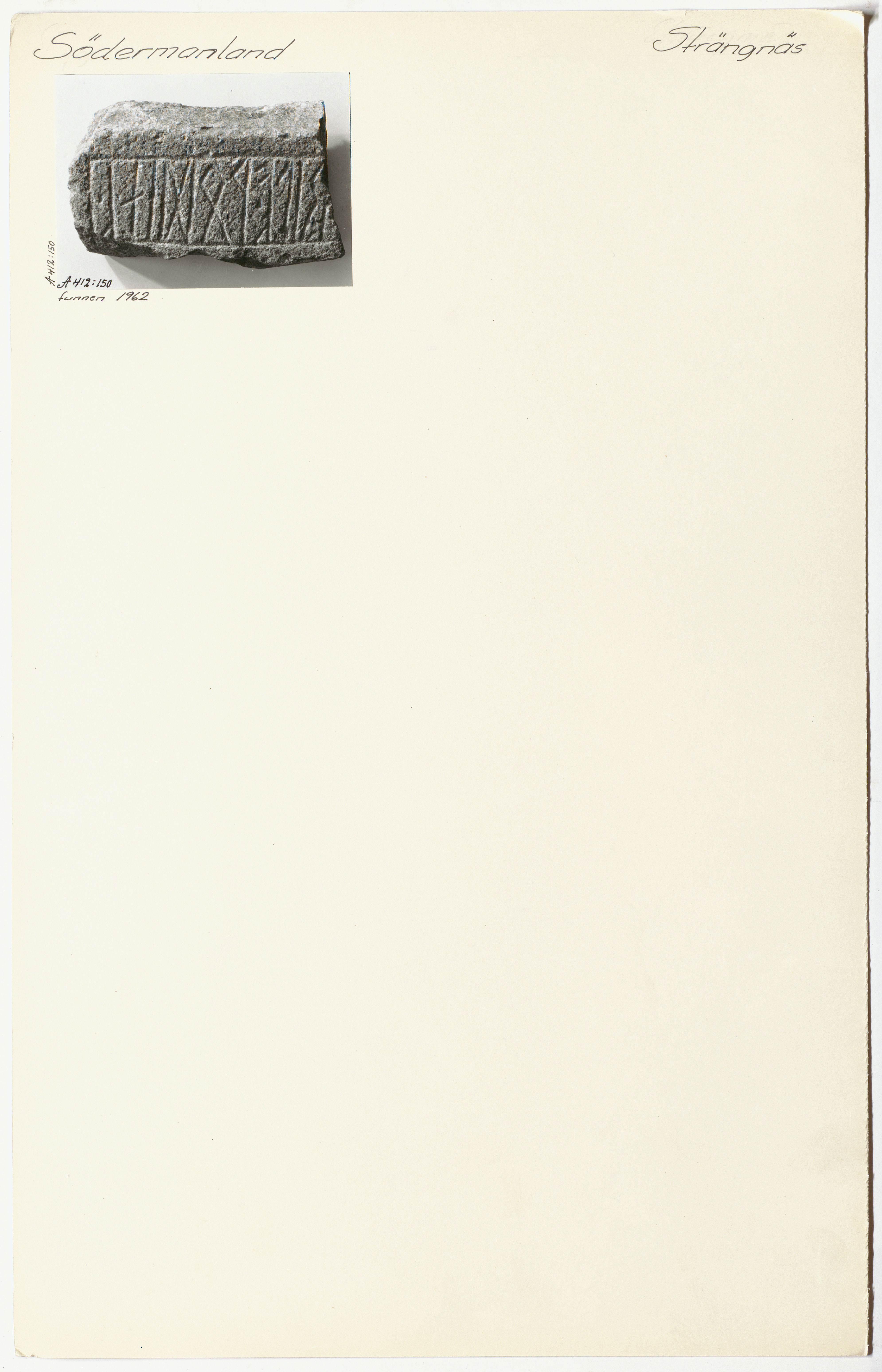 • Bild 1: Sö Fv2011;307 U Bildtext: Funnen 1962 Upphov: Fotograf okänd