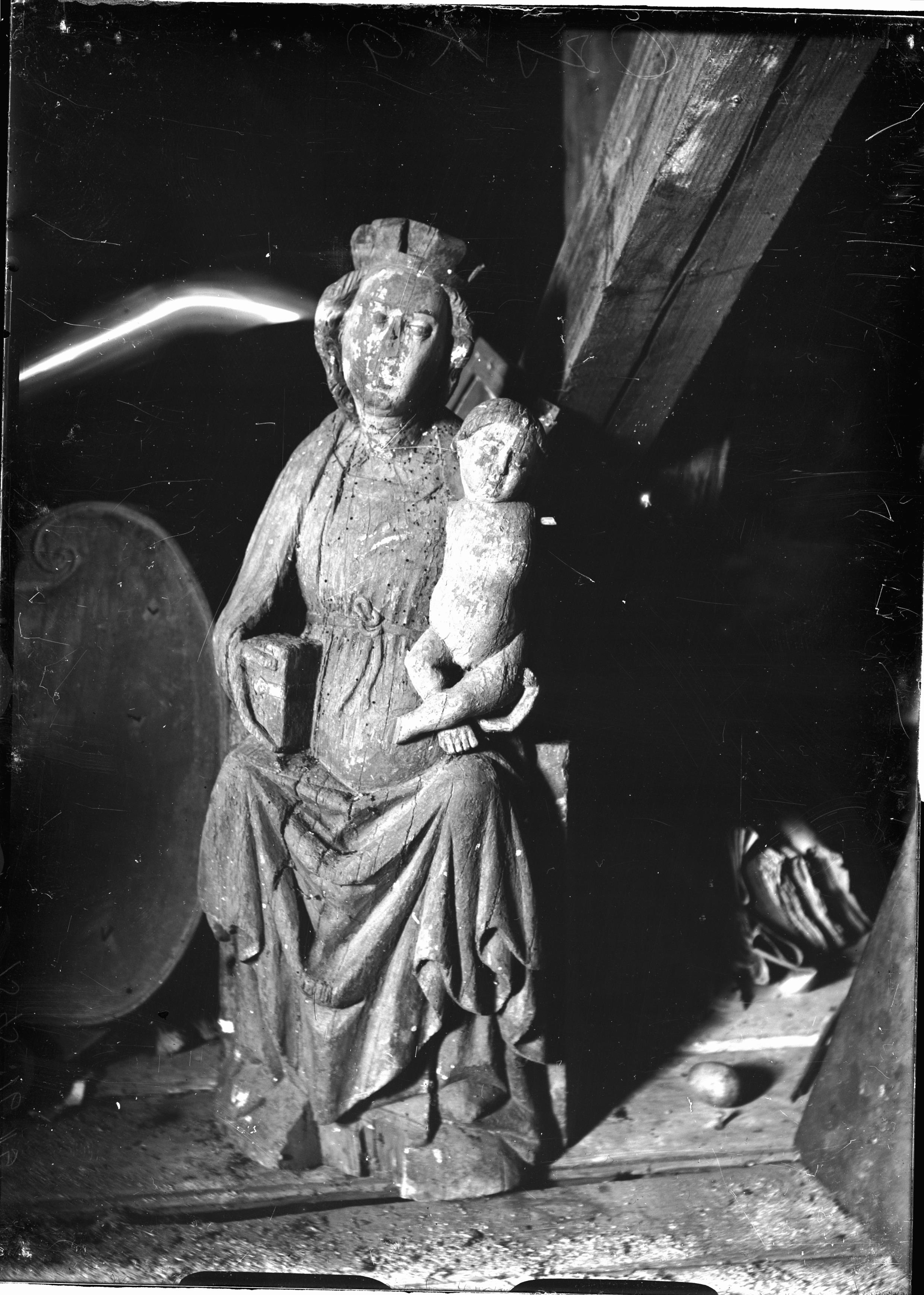 • Träskulptur föreställande Madonna med barnet. 1400-tal. Snabbinv.