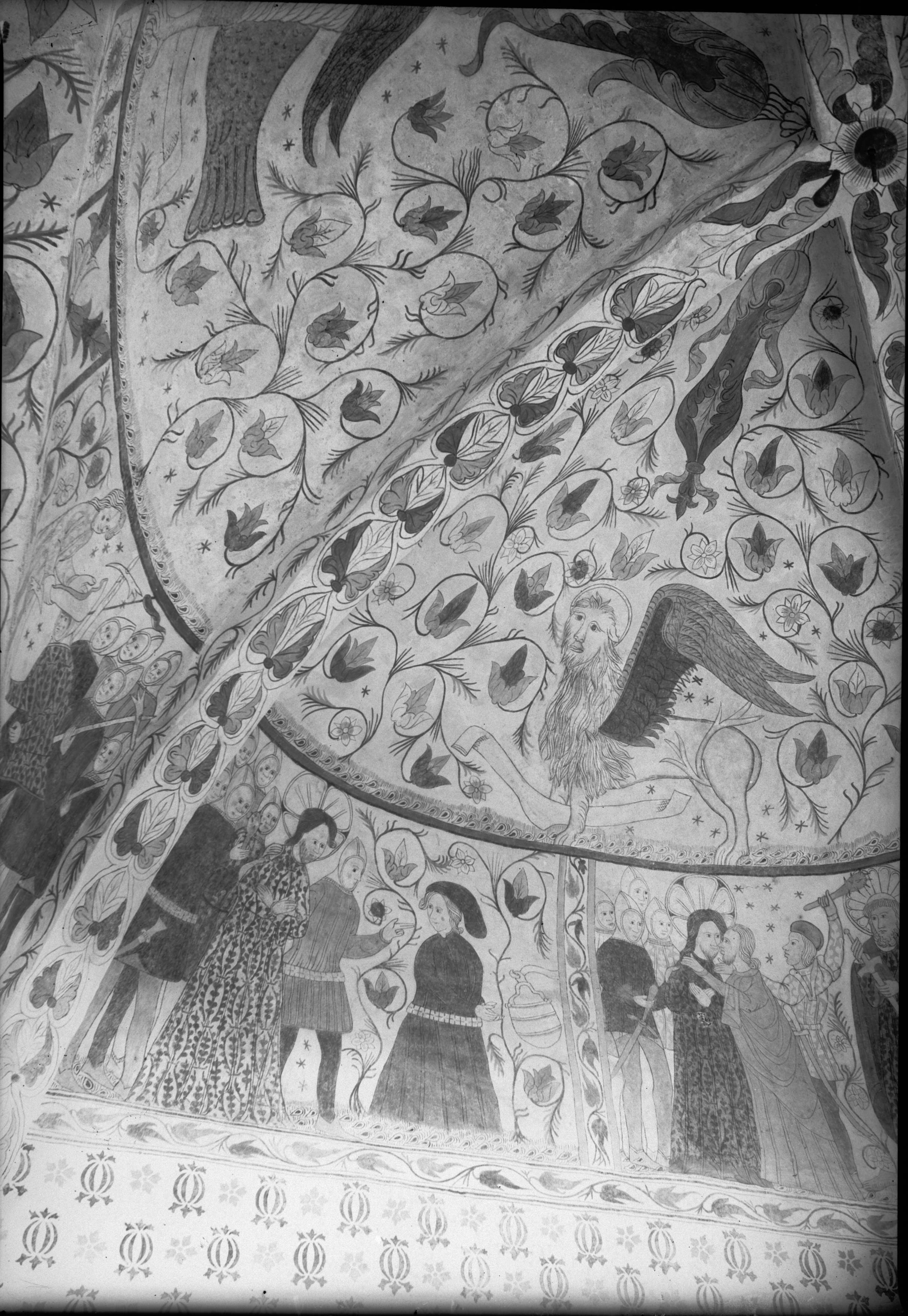 • Valvmålning från 1400-talet, östra delen av södra valvkappan i det västligaste valvet.