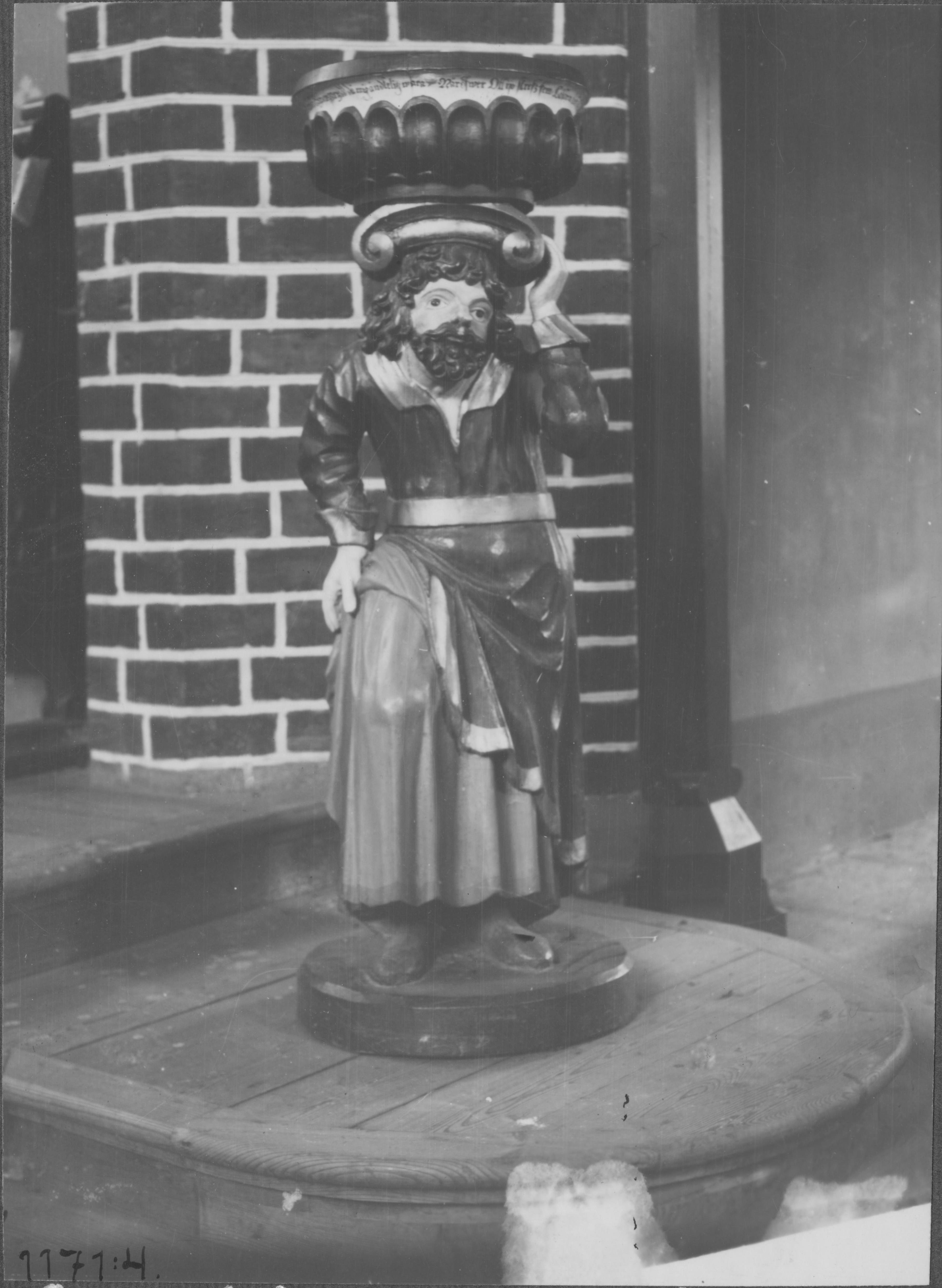 • Dopfunt i form av dopgubbe av trä. Långhårig man som på sitt huvud uppbär en cuppa vilande på en kudde. Inskrift under cuppan: "Then Tror och blifwer döpt, Han skall warda salig". Enligt inskriften från 1685. Snabbinventering.