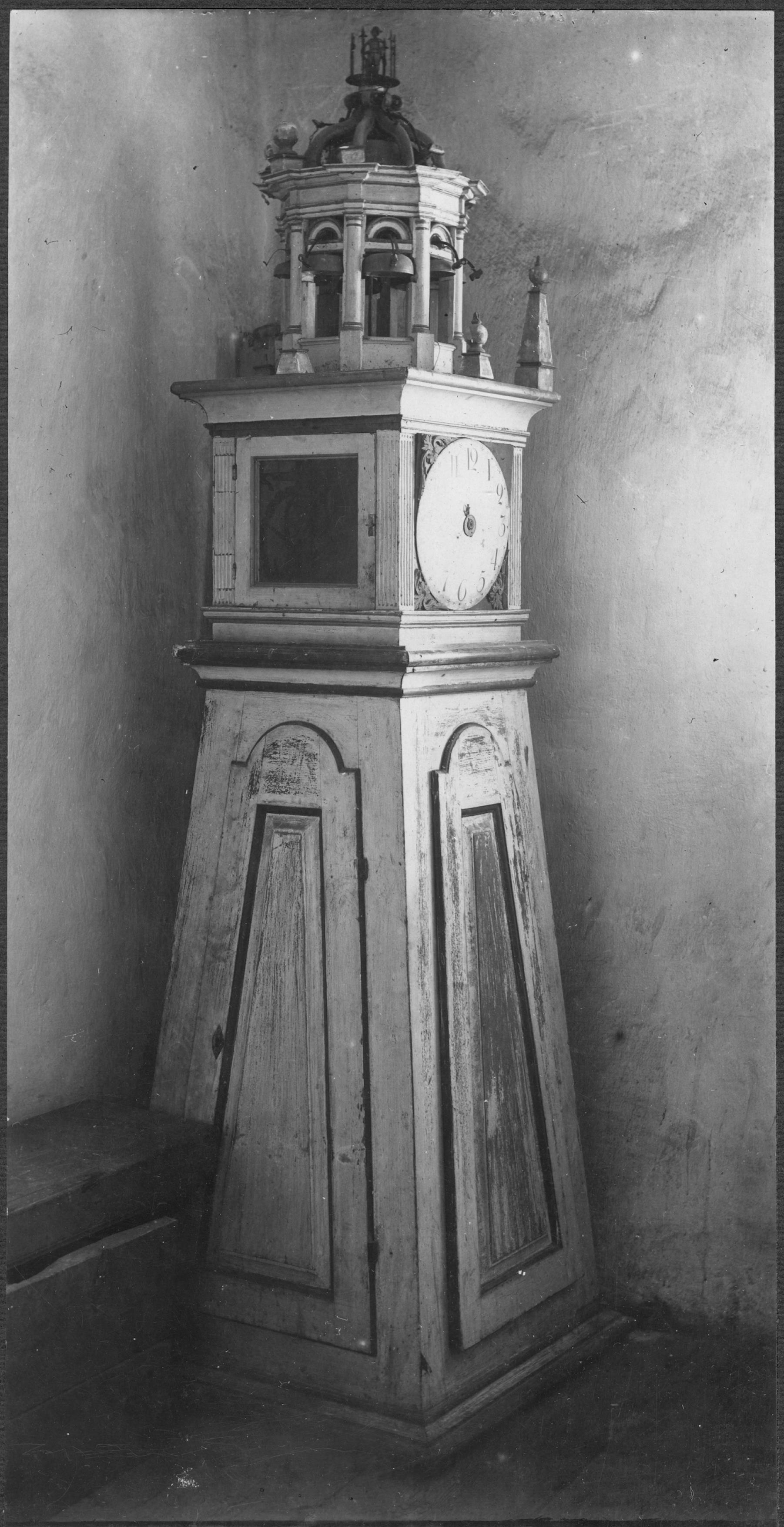 • Golvur med fodral i form av ett torn i miniatyr med lanternin.