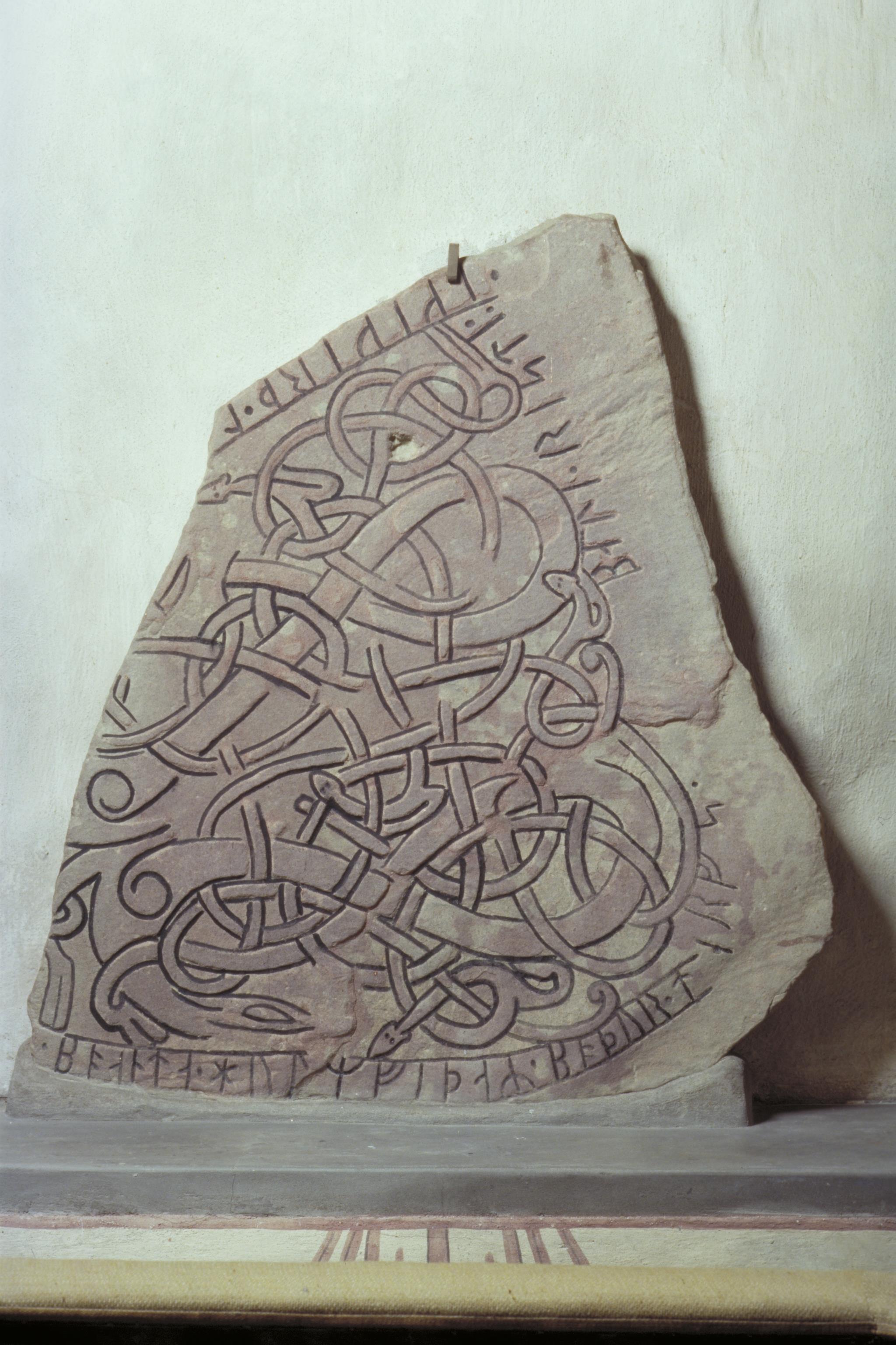 Inskriften lyder: Ingegärd lät (resa stenen efter?) Holmfrids man och Djärvs broder. Balle ristade. Fotosyfte: Publicering