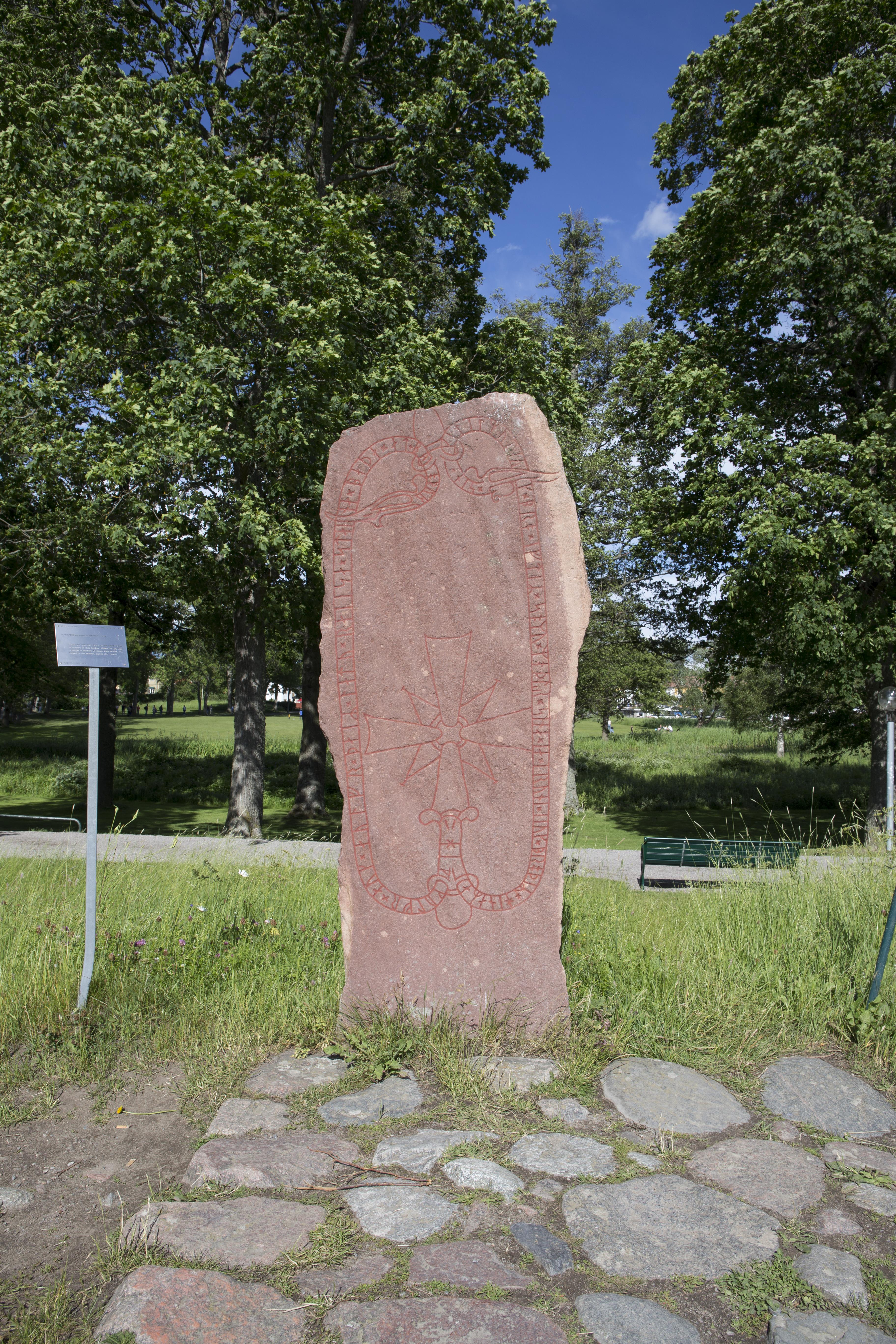 Hälgulv och Öulv, de lät resa båda stenarna efter sin broder Kättilmund och (gjorde) bro efter Soma, sin moder. Men Brune, hennes broder, högg runorna. Fotosyfte: Bildarkivet