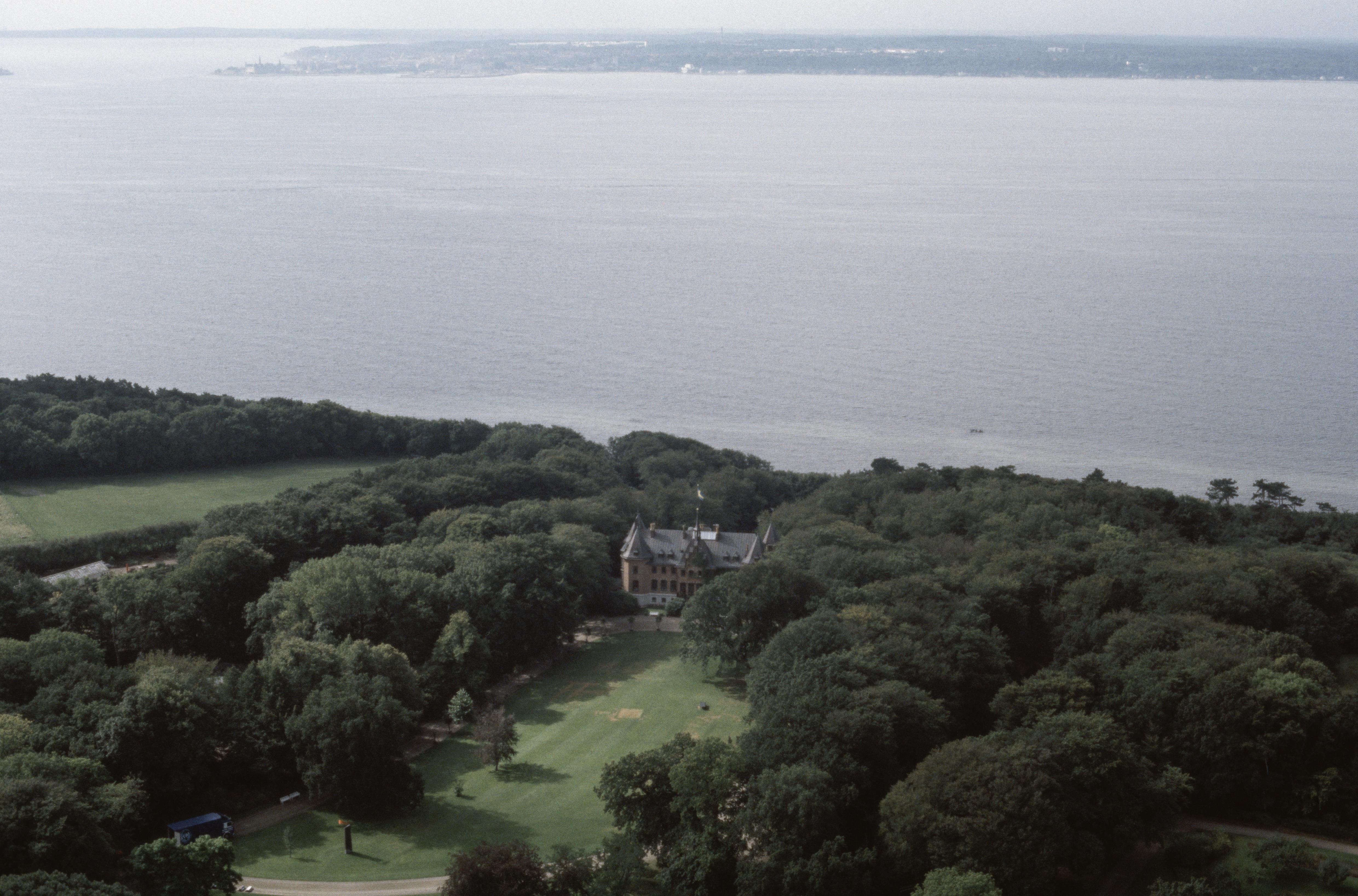 Sofiero slott vid sockengränsen mellan Helsingborg och Allerum (till höger). Bilden är tagen mot (väderstreck): SV Fotosyfte: Flygbildsdokumentation
