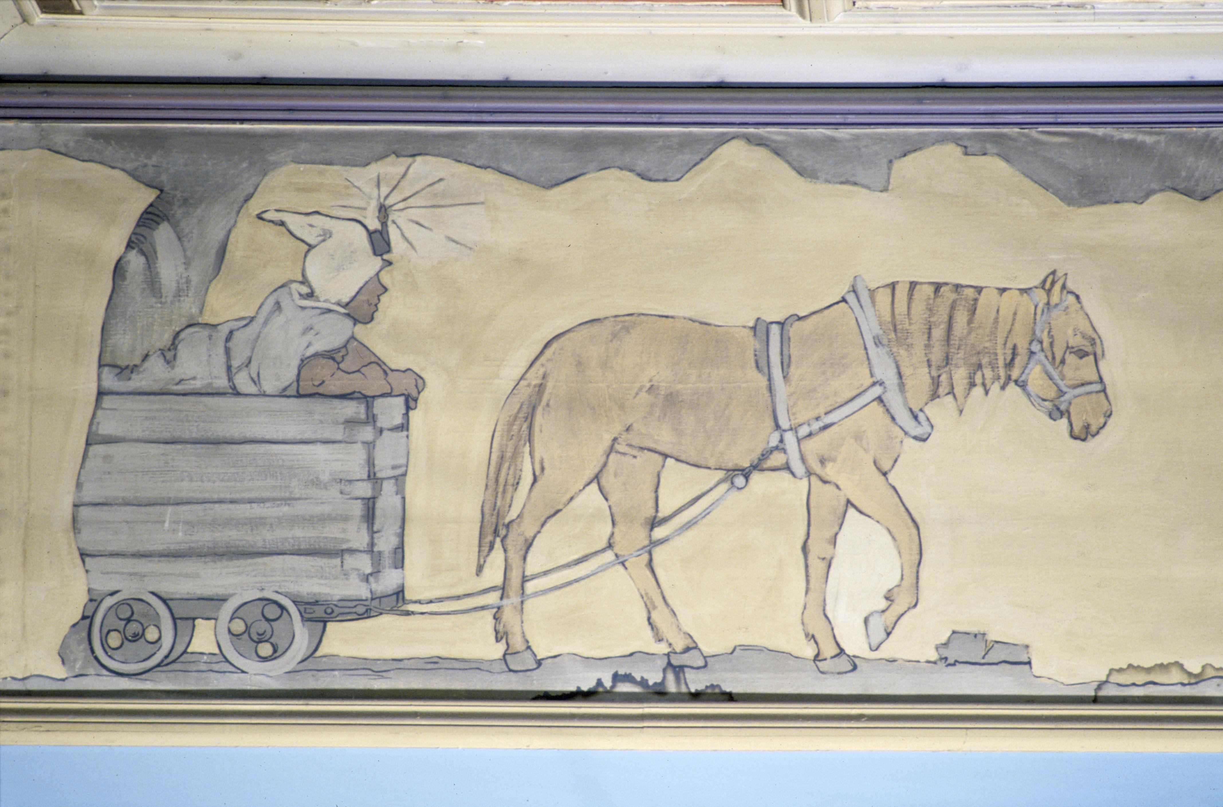 • Folkets trädgård ? Sjöcronas park ? Tivoli. Takfris som illustrerar gruvverksamheten med små tomtar som gruvarbetare.