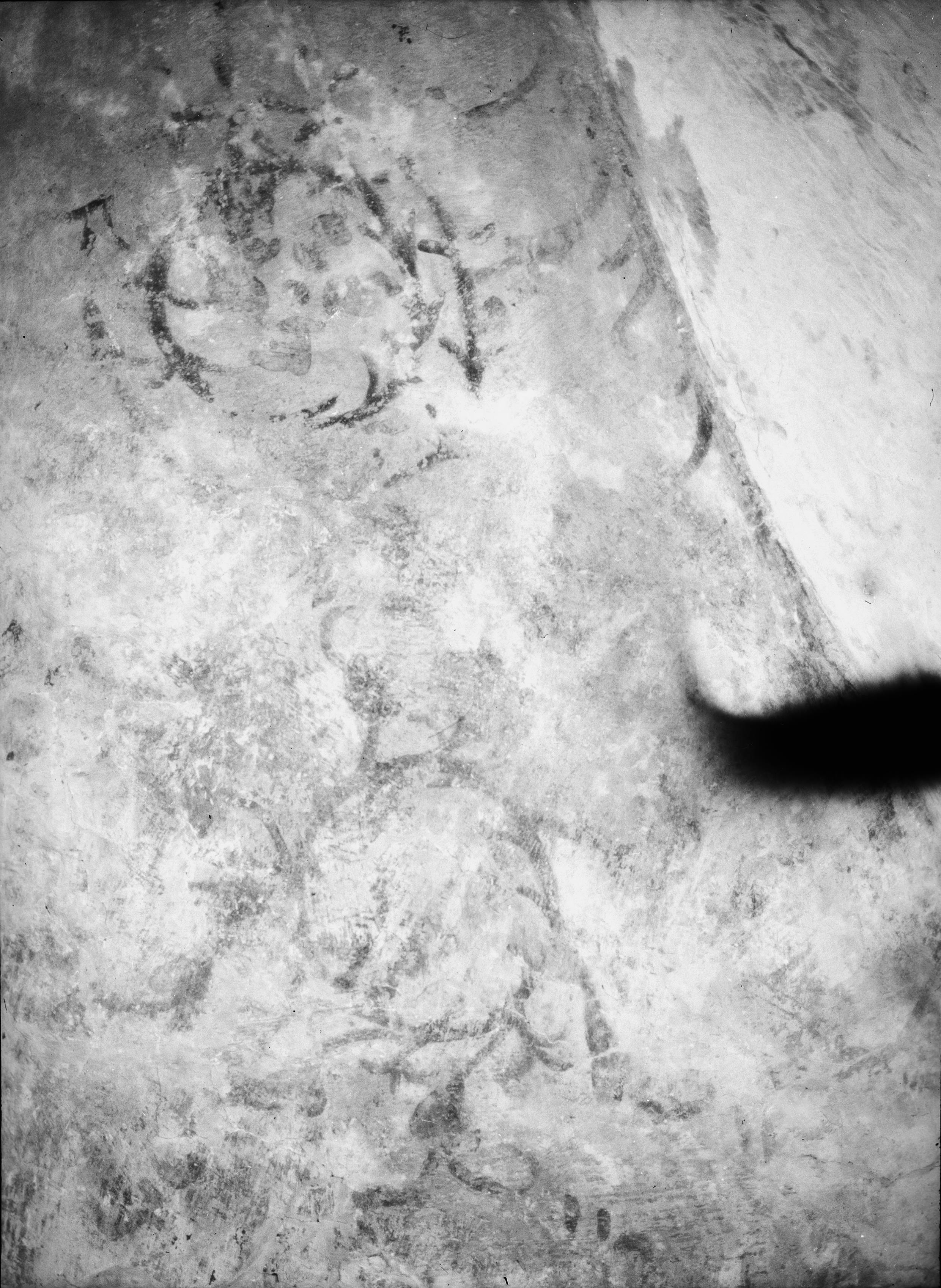 • Kalkmålningar i västra valvet i långhuset. Senmedeltida. Detalj.