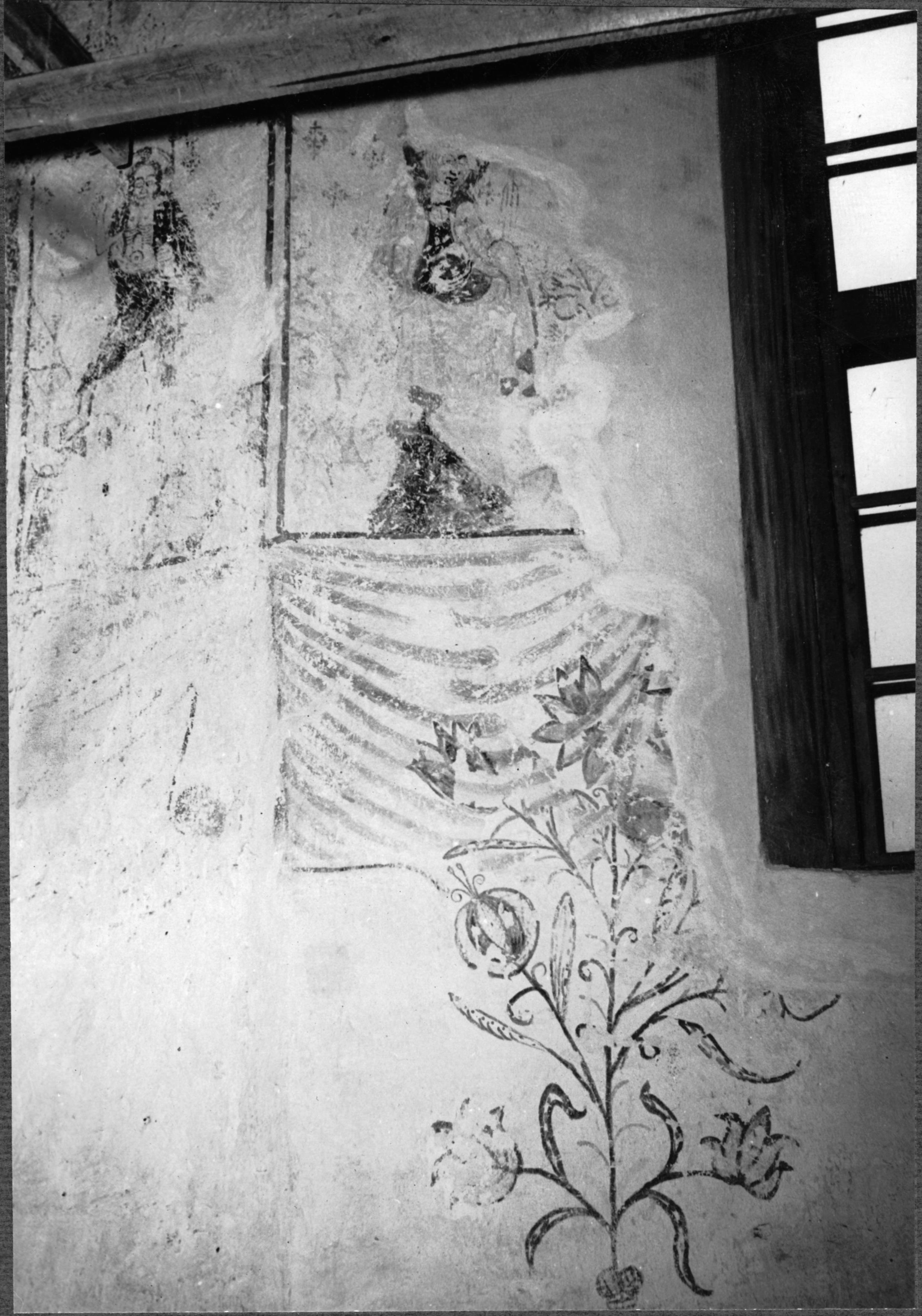 • Detalj av kalkmålning på långhustes norra mur, passionsfris, av Passionsmästaren, från 1400-talets mitt. Nr. 15.
