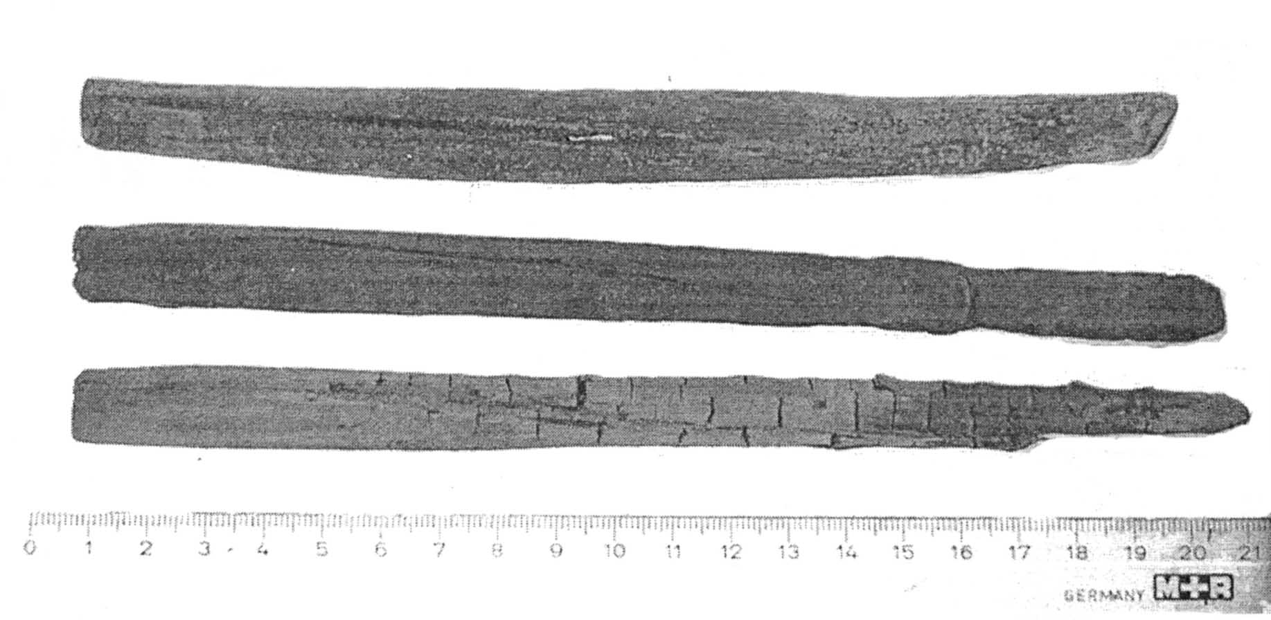 • Förmodade armborstpilar, som enligt uppgift skall ha hittats i vraket. Foto: B. Wallbom, Kalmar Läns Museum.