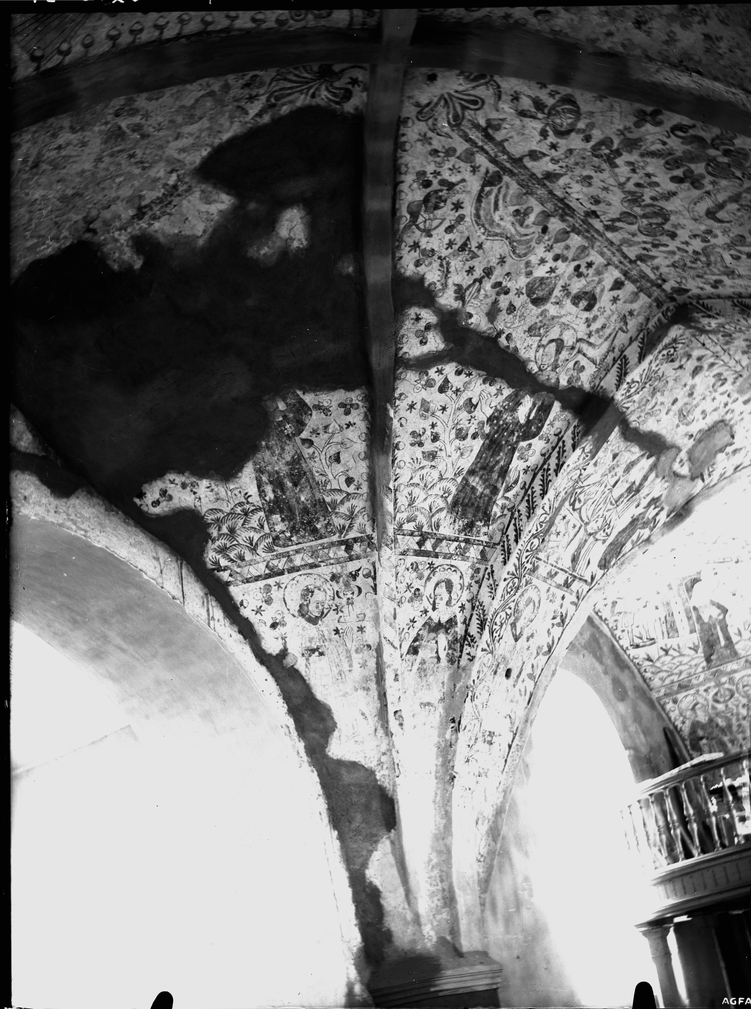 • Kalkmålning. Mittkvadratens nordvästra hörn. Efter lagning. Före konservering.