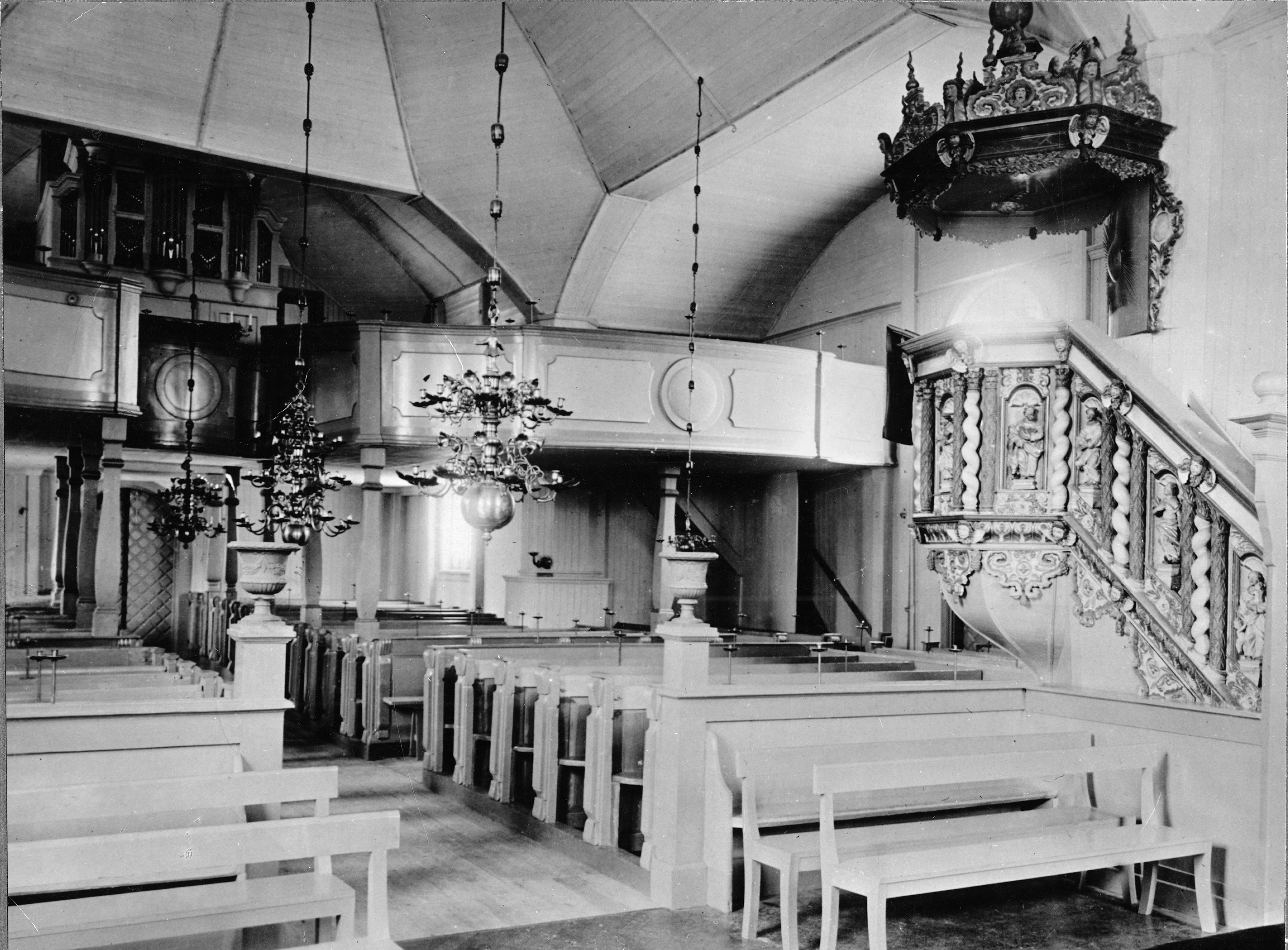 • Interiör mot nordöst. Efter restaureringen vid 1800-talets slut