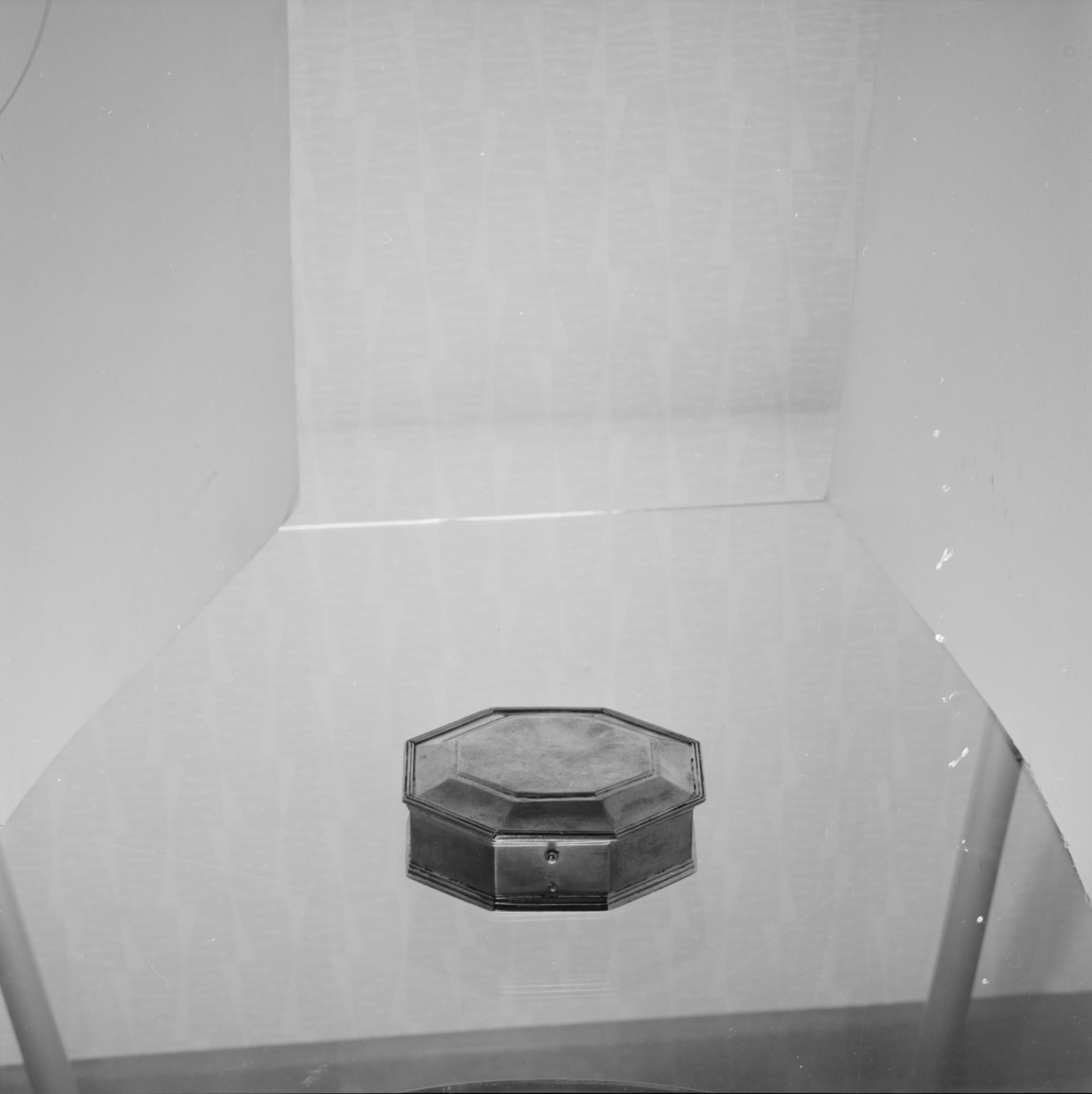 • Oblatask av silver, ått-kantig. Enligt inskrift skänkt. Snabbinv.