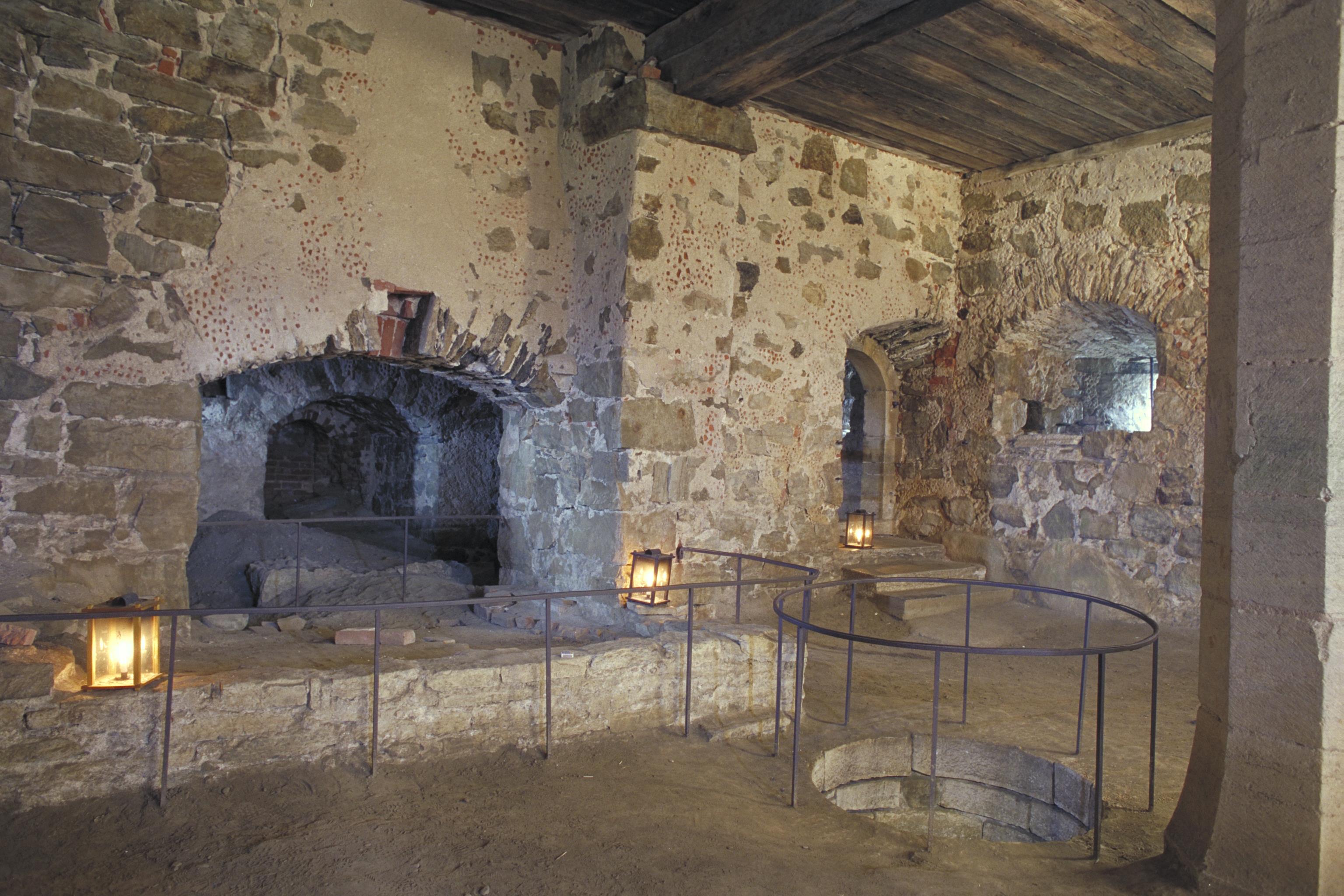Köket, brunn och spis. Fotosyfte: Bildarkivet