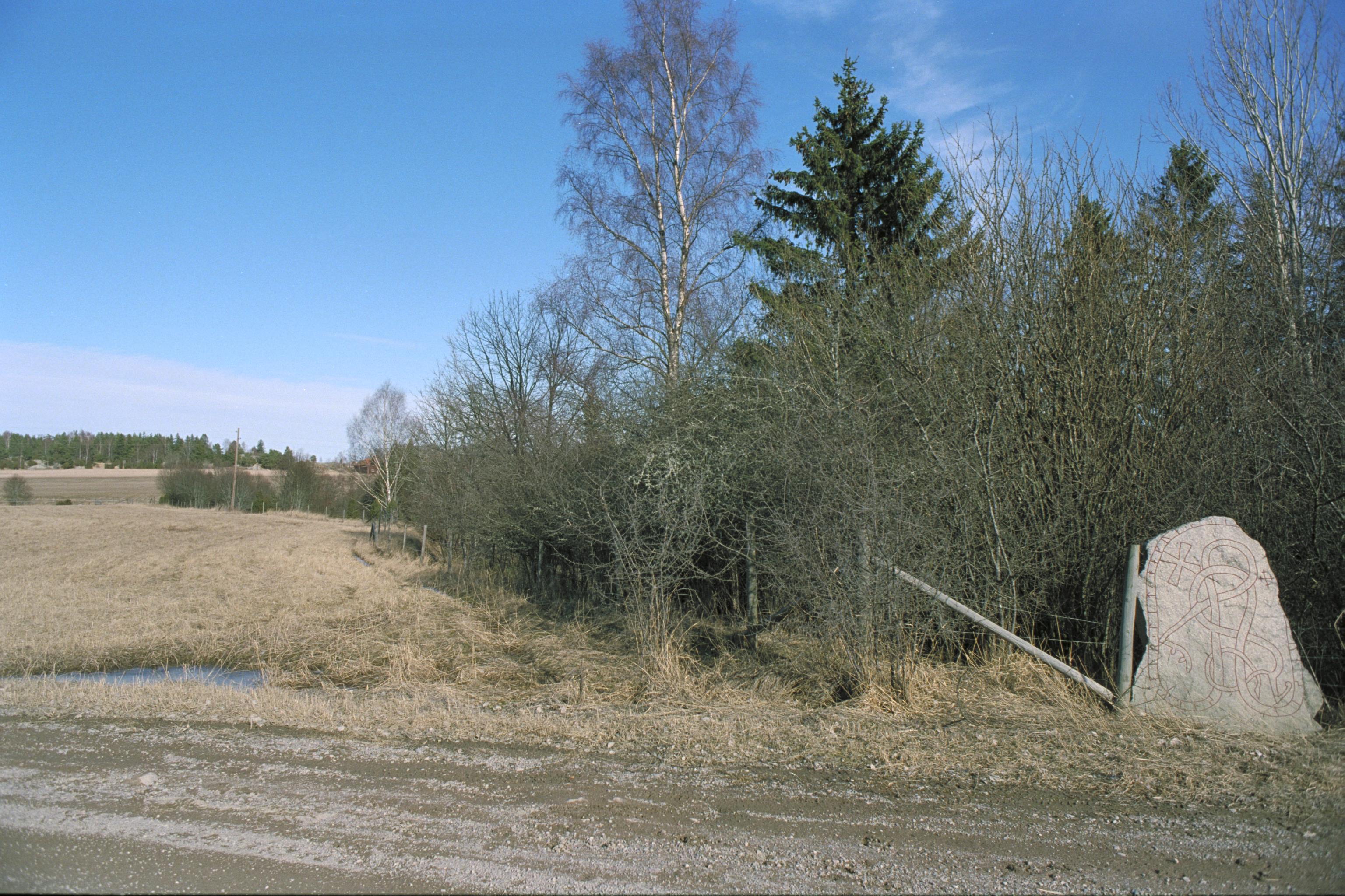 Stenen står vid en vägkant, något skymd och inträngd i ett slånbärssnår, taggtråd på baksidan. Måste fotograferas före grönskan. Ristningen mot väst. Ytterligare bilder finns, oregistrerade, tillsammans med negativen. (Färgdia 6x6 cm, runstenen i sin helhet, ej detaljbilder.)