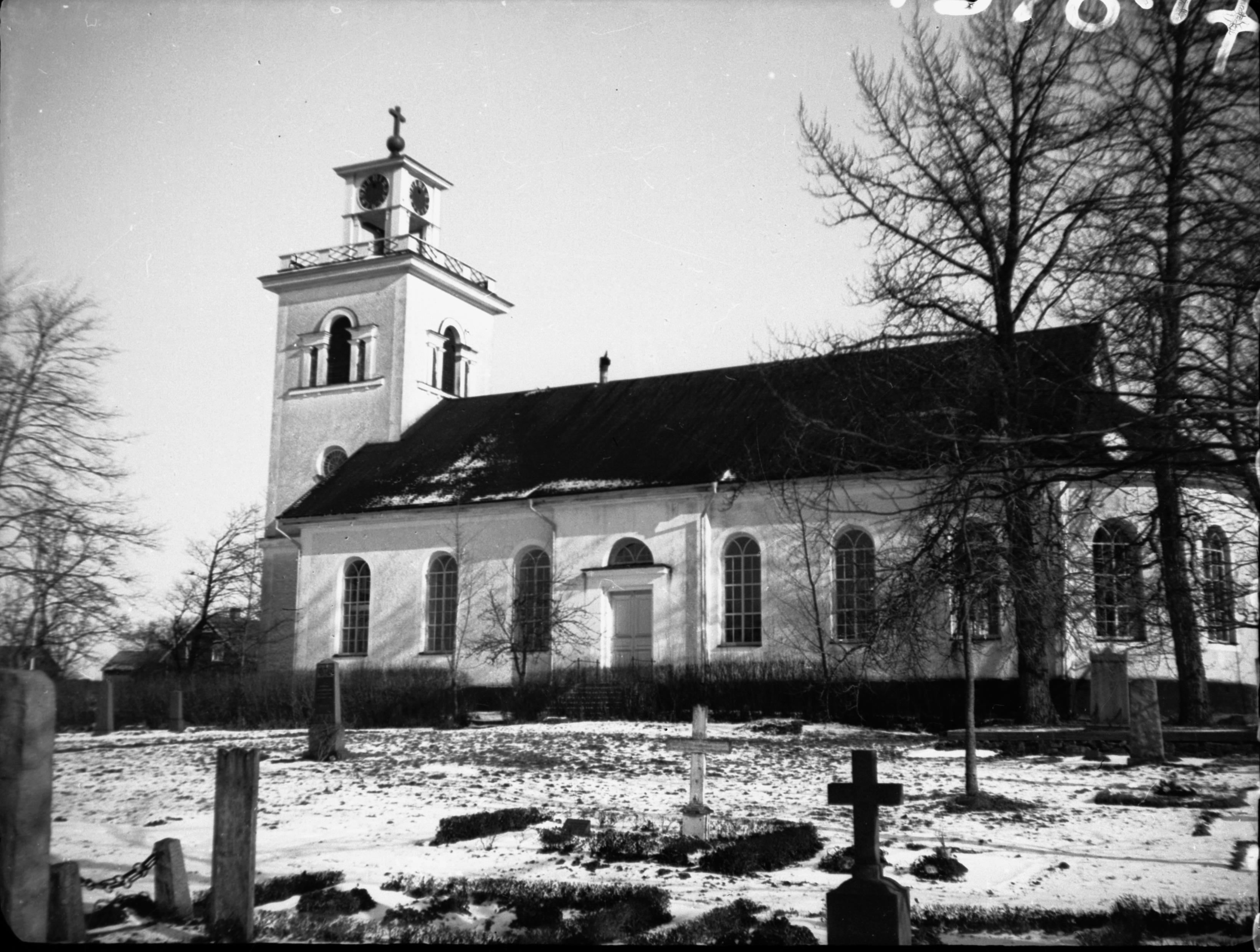 • Kyrkan från sydöst. Vykort.