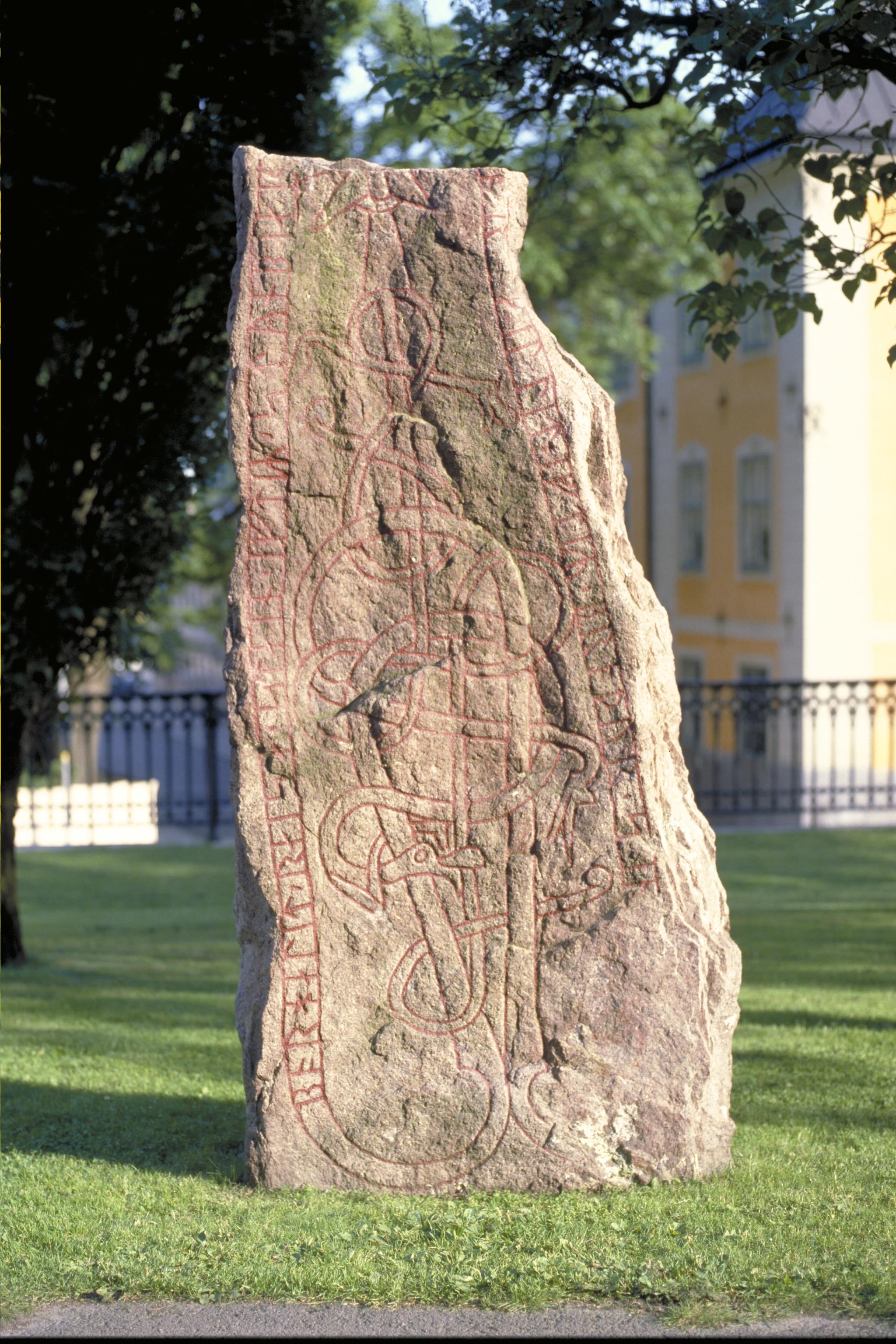 Inskriften lyder: Borga lät resa stenen efter Stynbjörn .. Torkel lät (resa den) efter sin broder. Fotosyfte: Publicering
