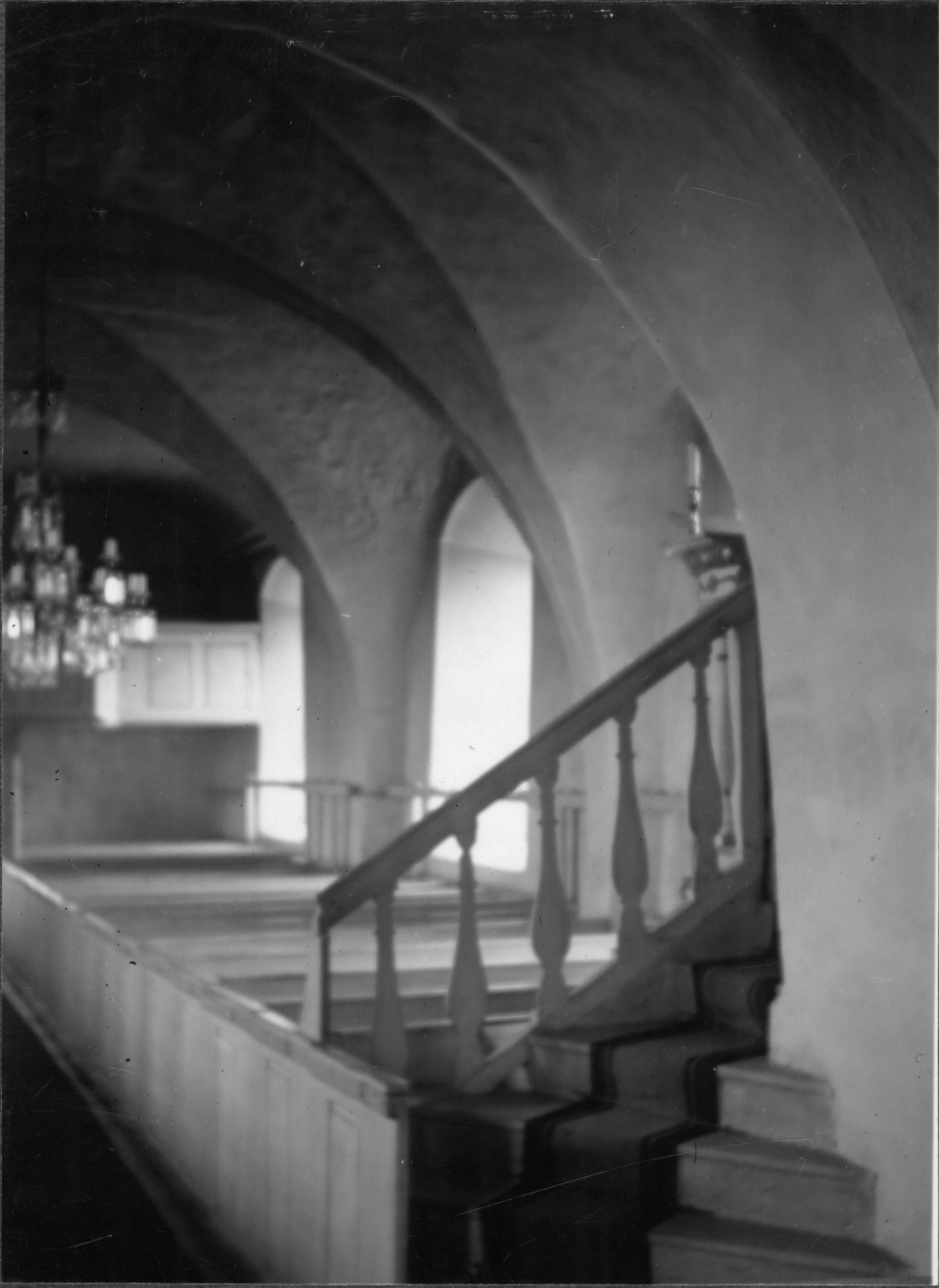 • Interiör mot väst. Bänkar. 1600-1700-talet. Snabbinv.