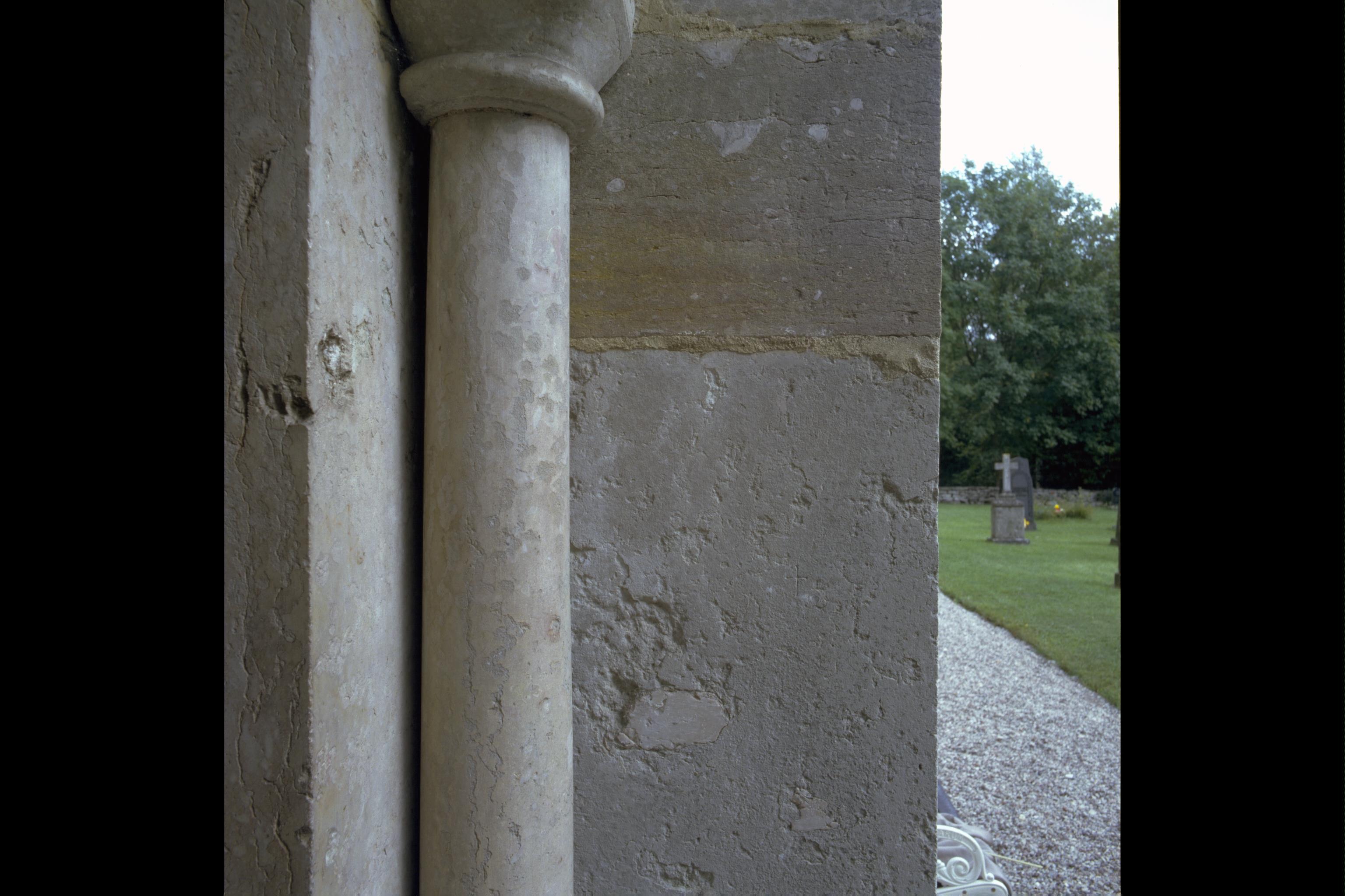 Södra långhusportalens östra smyg. Intill runristning G104 Fotosyfte: Publicering/runskadeprojektet