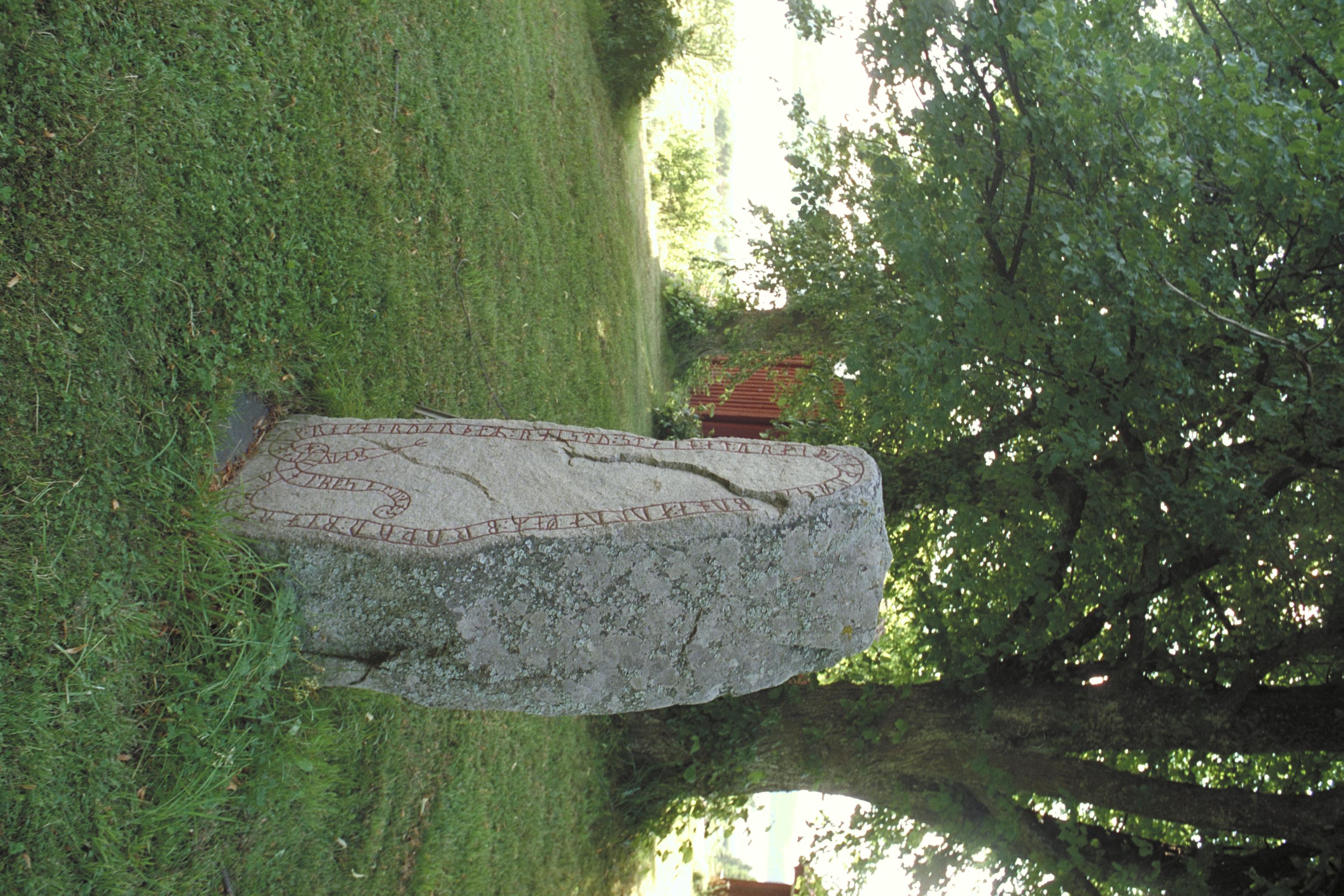 • Inskriften lyder: Gylla och Ragntrud, de reste stenen efter Vred, sin fader, make till Olov (kvinnonamn), broder till Björn, Gud hjälpe hans själ.