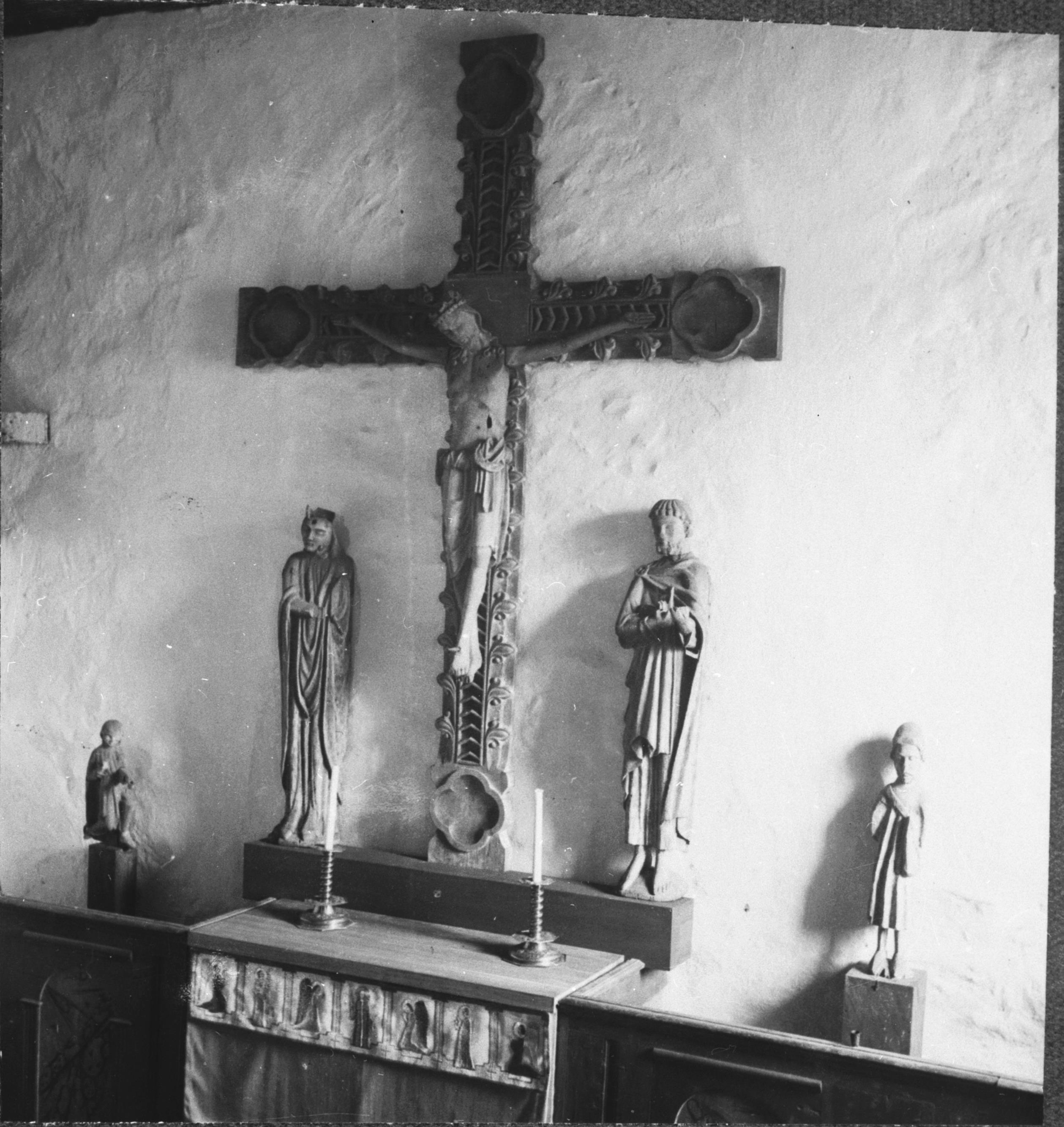 • Kalvariegrupp, trä, 1200-tal. Efter restaurering.