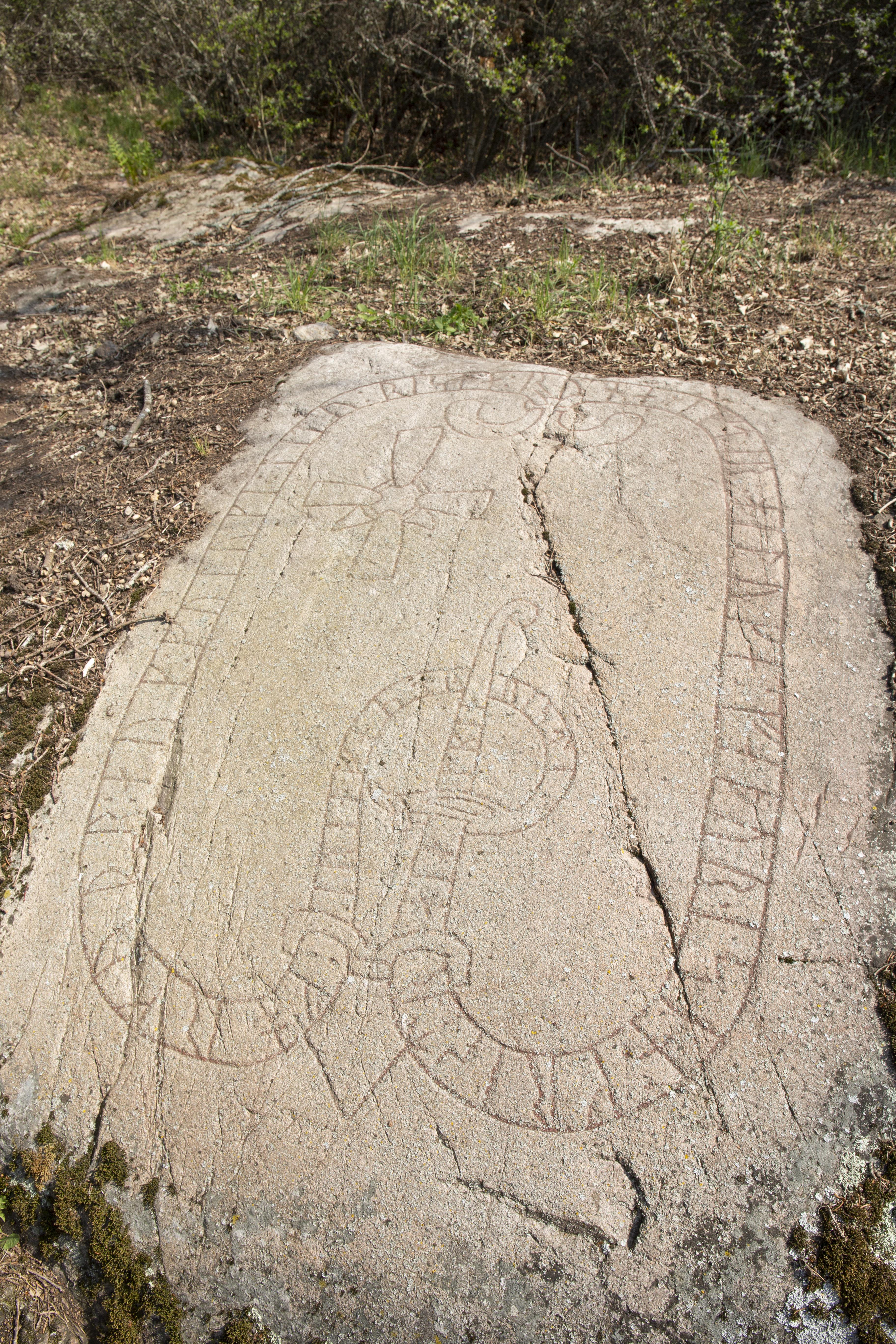 • RAÄ-nr: Skå 132. Inskriften lyder: "Forkum och Fullinge lät rista runorna efter Iluge, sin fader. Kristus hjälpe. Ärenfast ristade".