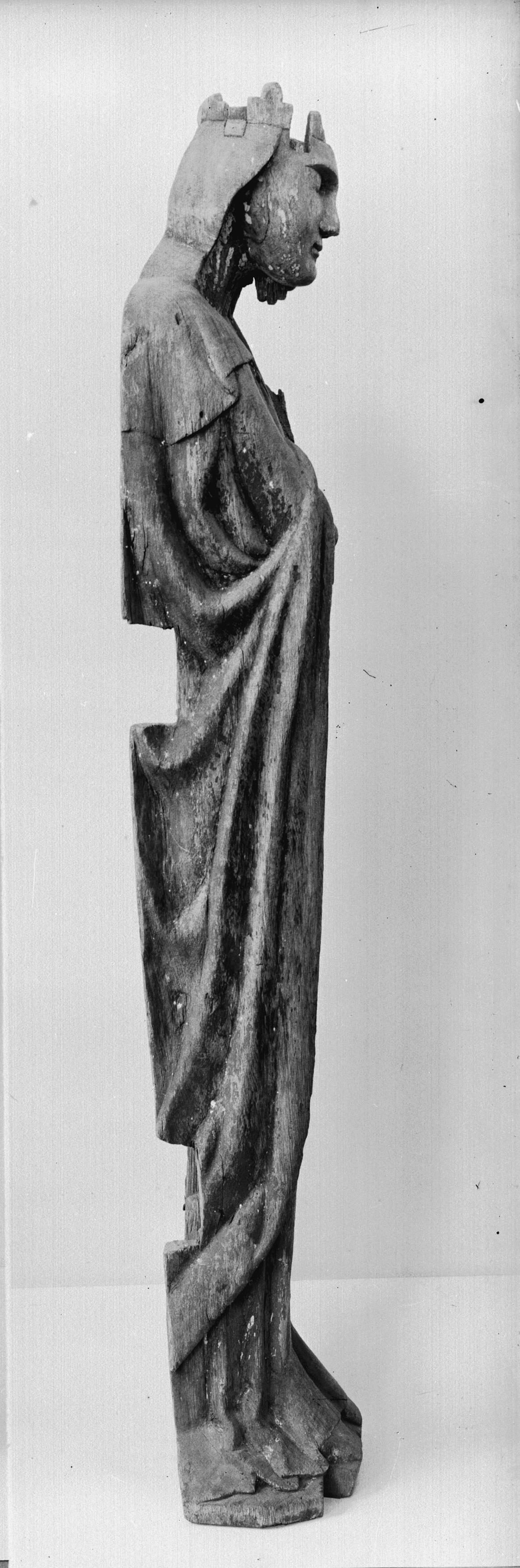 • Träskulptur från kalvariegrupp: Maria, 1200-tal, i profil.