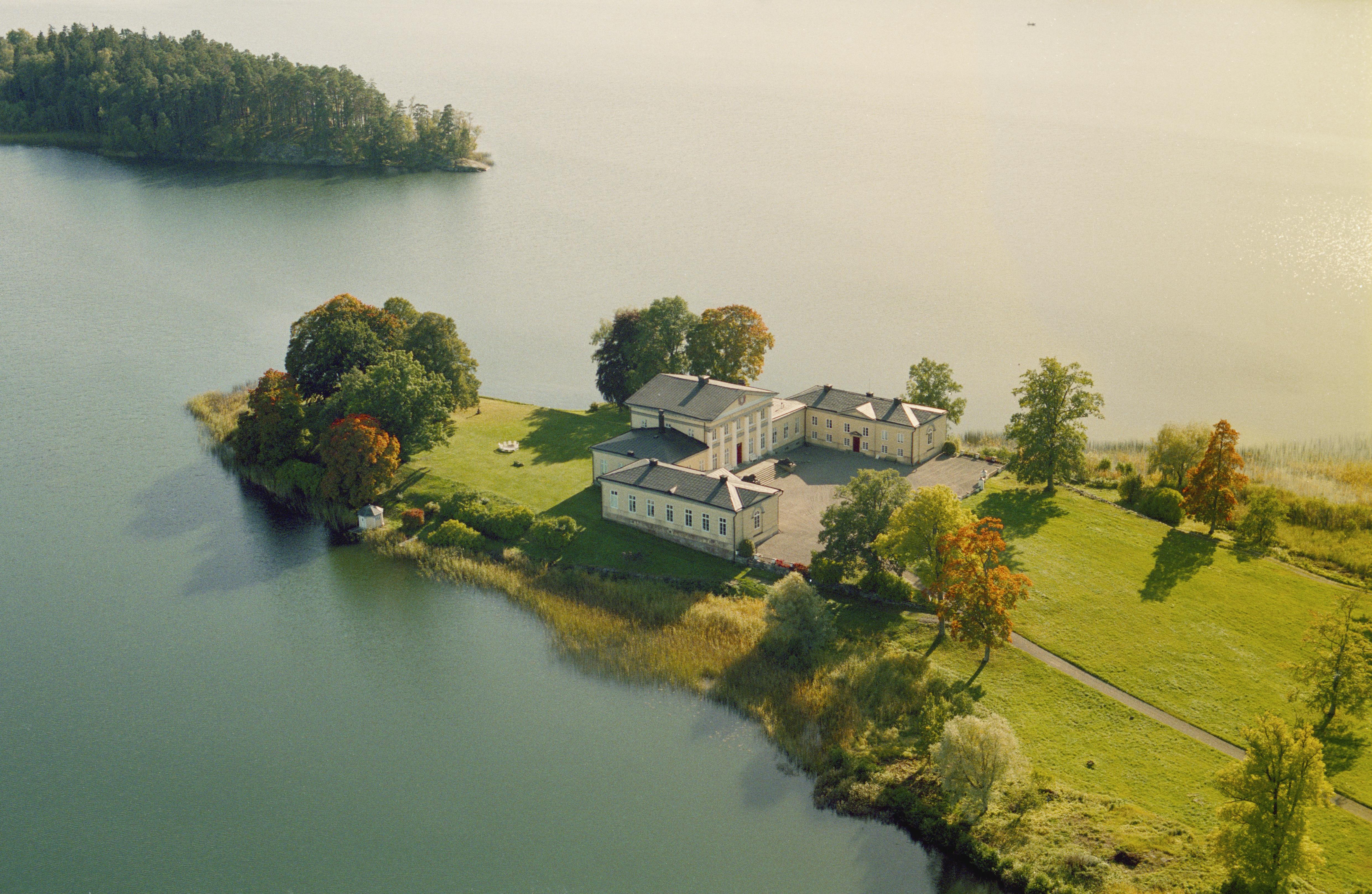Elghammars herrgård (skrivs även Älghammar) byggnadsminne RAÄnr Björnlunda 148:1. Engelska udden vid sjön Lockvattnet. Bilden är tagen mot (väderstreck): S Fotosyfte: Flygbildsdokumentation