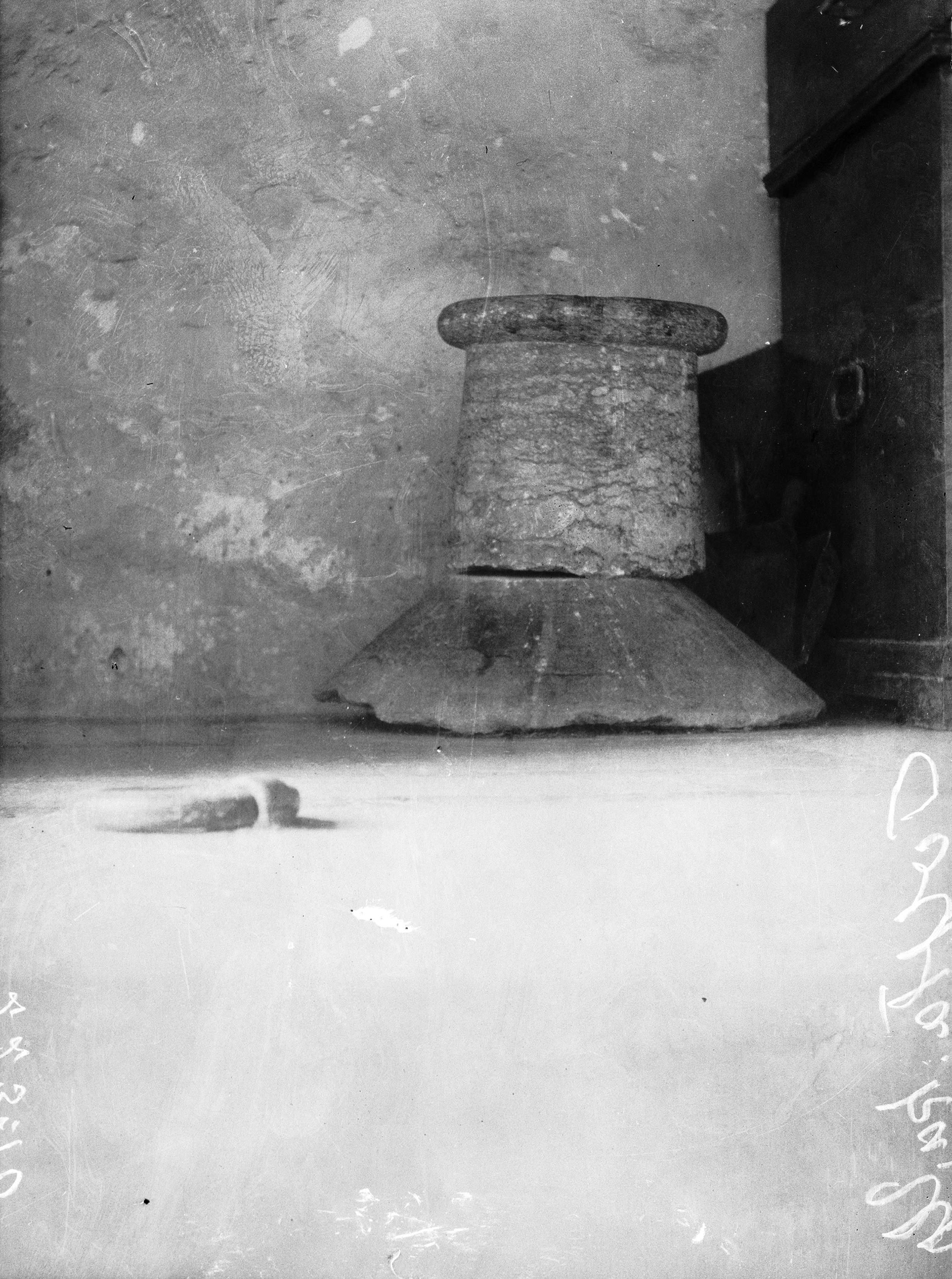 • Dopfunt 1200-talet. Restaurerad och kompletterad 1956 av Bertil Videlius gipsbildhuggeri. Detalj av foten.