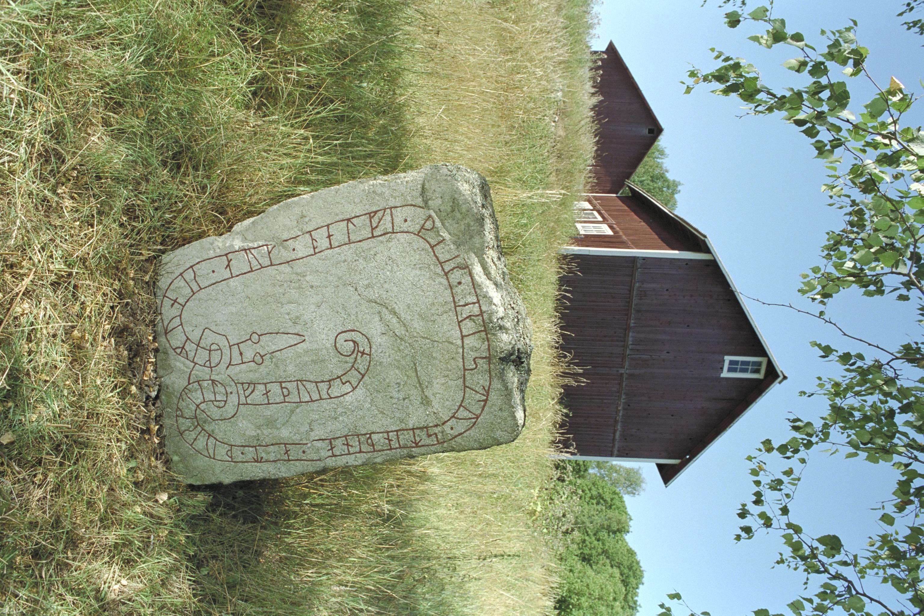 Inskriften lyder: Ingemund och Tjälve de reste denna sten efter Torkel, sin fader. Fotosyfte: Publicering- och forskningsbilder