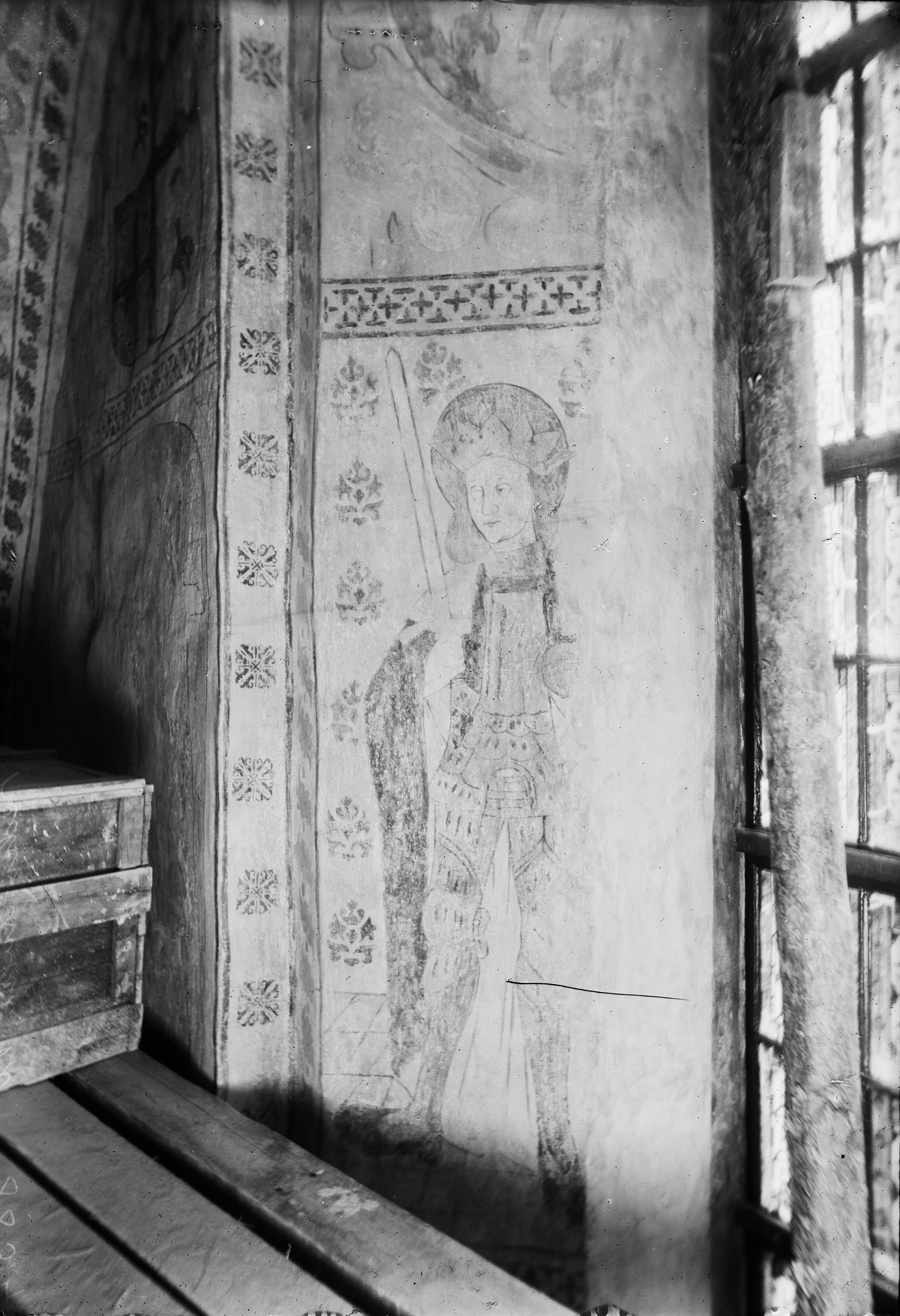 • Kalkmålning, vid korfönstret. Efter restaurering.