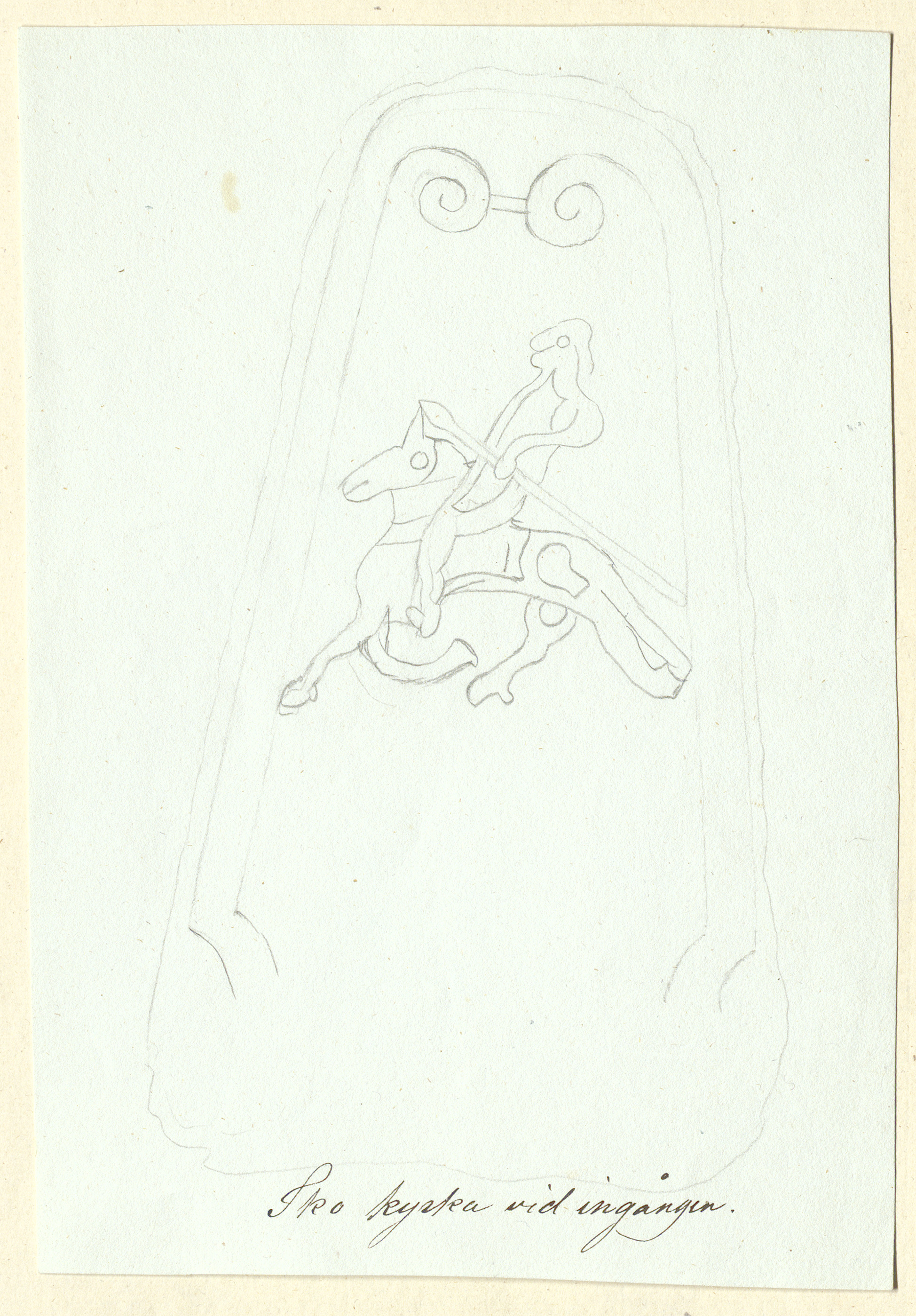 • Sko kyrka vid ingången. Osignerad teckning. Axel Wætter?