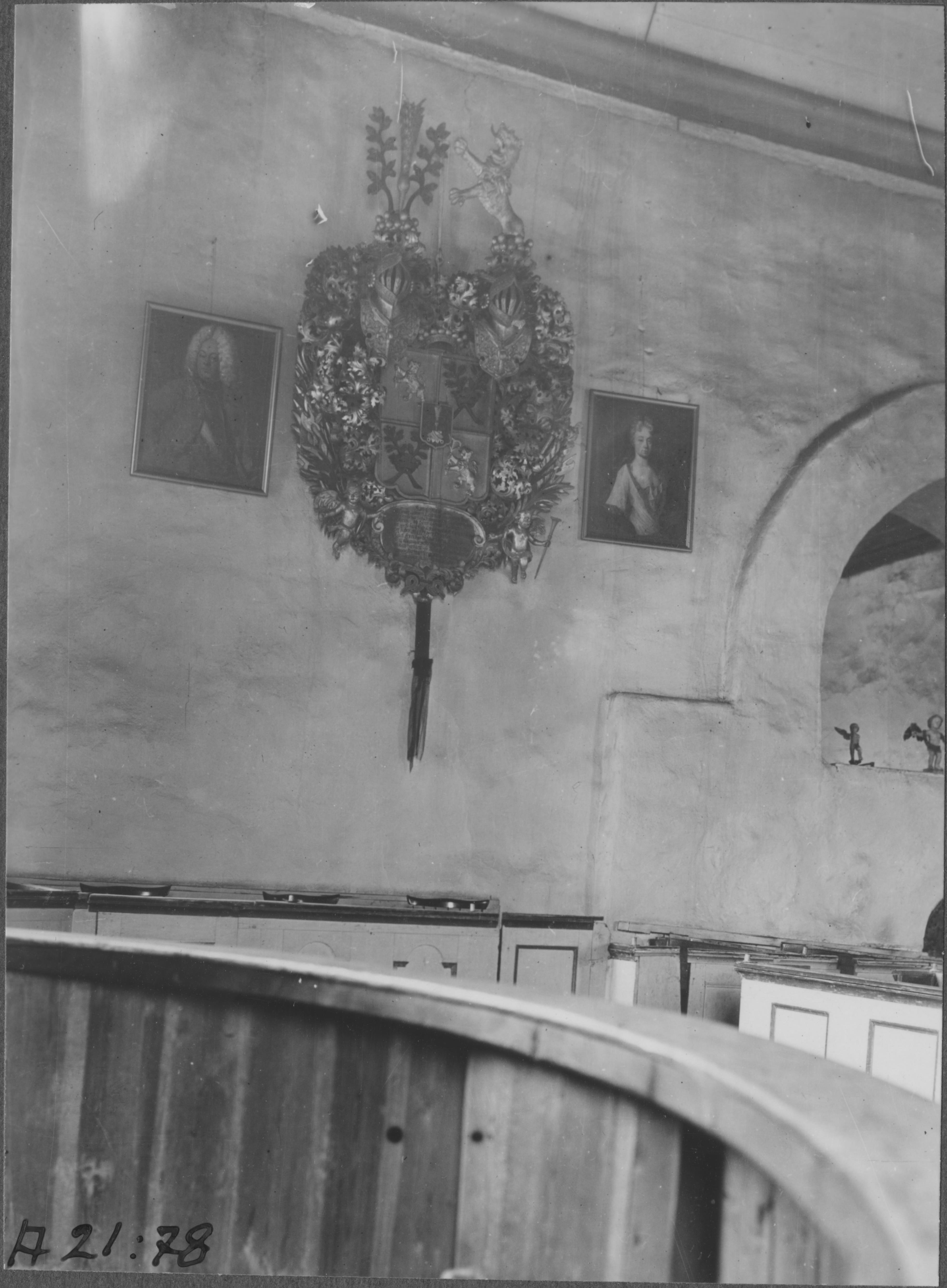 • Huvudbanér i snidat trä över Johan von Schaar (1680-1723) och hans tre söner. Kyrkans södra vägg.